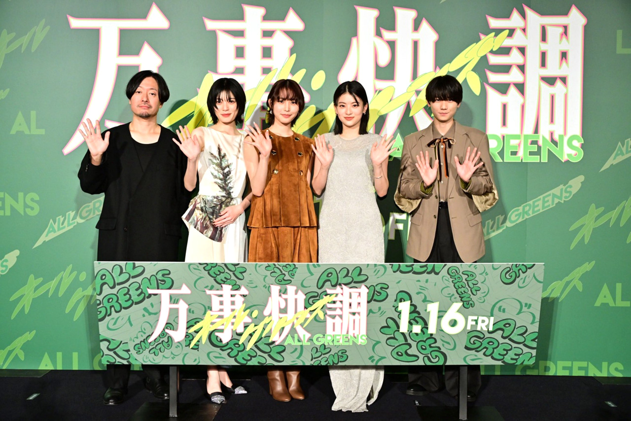 映画『万事快調<オール・グリーンズ>』(監督:児山隆/配給:カルチュア・パブリッシャーズ)完成披露上映会が1月6日に東京・新宿バルト9で開催され俳優・南沙良、出口夏希、吉田美月喜、羽村仁成、児山隆監督が登壇した。
