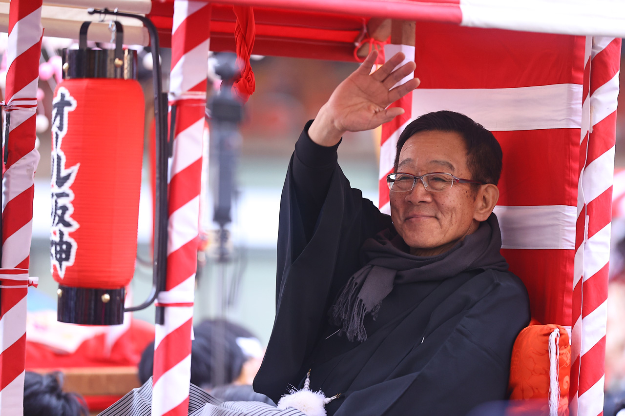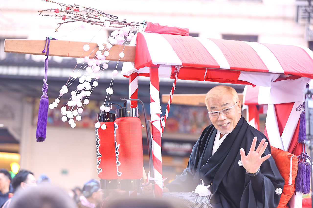 お笑いコンビ『オール阪神・巨人』のオール阪神とオール巨人が1月10日に大阪ミナミ周辺で開催された『宝恵駕行列』に参加した。