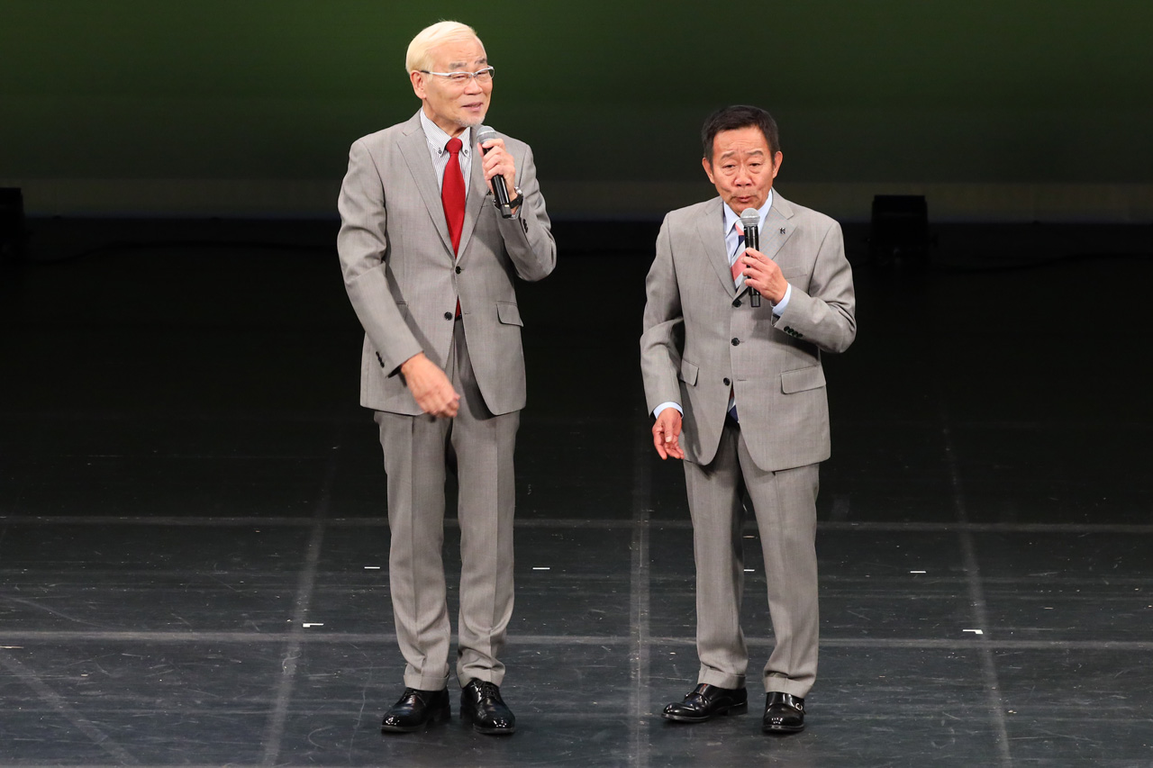 もちろん阪神・巨人も漫才を披露。50年積み上げてきた経験と技術を存分に発揮し、会場を沸かすだけでなく、阪神が落語、巨人が自身の持ち歌『男の子守唄』、『夢浪漫』を熱唱するなど、それぞれの魅力も十二分に味わえるソロコーナーも設けられていました。