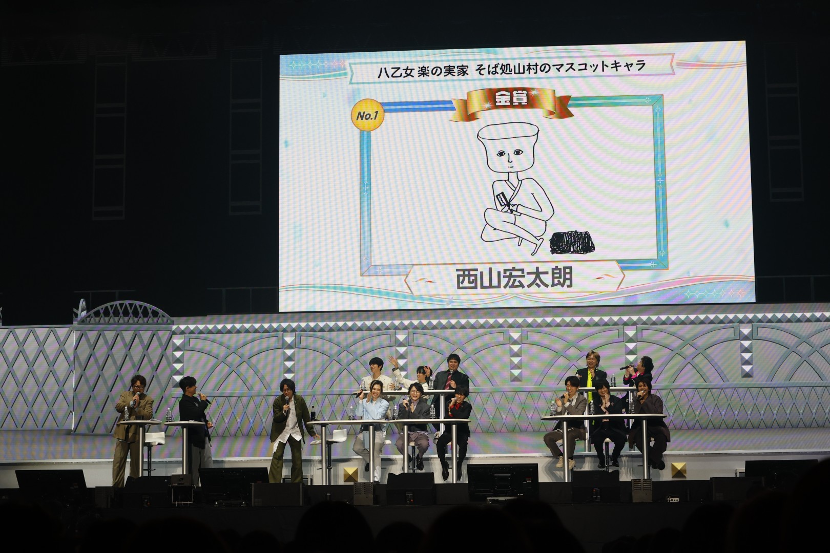 お題は「八乙女 楽の実家『そば処 山村』のマスコットキャラ」。キャスト陣が事前に描いたイラストが匿名でスクリーンに投影されると、それぞれに独創性あふれる画風のキャラクターたちを見て、会場は笑顔に包まれた。