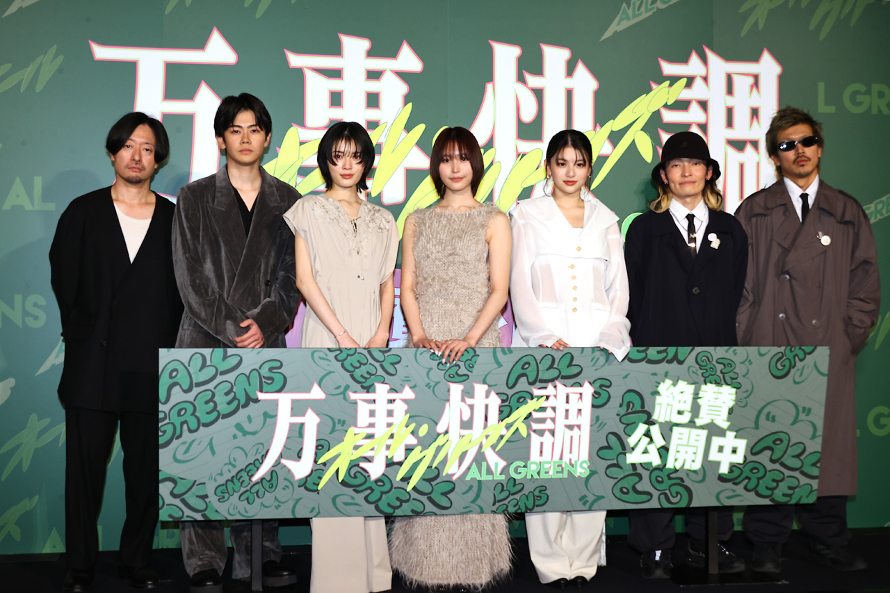 俳優・南沙良、出口夏希が1月17日に東京・新宿ピカデリーでW主演映画『万事快調<オール・グリーンズ>』(監督:児山隆/配給:カルチュア・パブリッシャーズ)公開記念イベントに俳優・吉田美月喜、黒崎煌代、主題歌を担当したNIKO NIKO TAN TAN、児山隆監督とともに登壇した。