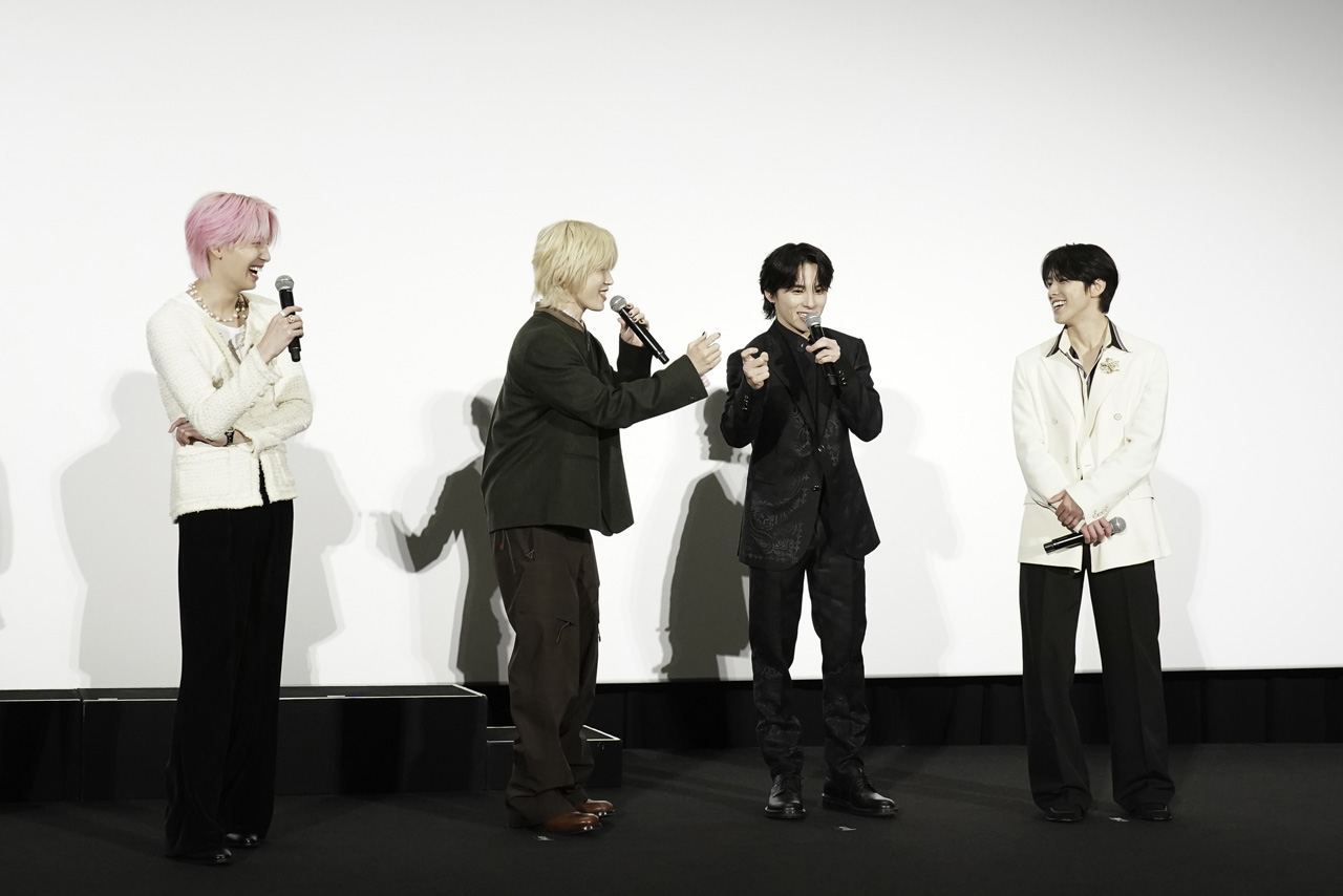 通常版に加え、SCREENX、4DX、ULTRA4DXの各種ラージフォーマットでも同時公開されている本作。ULTRA 4DXでの鑑賞もした川尻蓮は、「視界全部がJO1なので“神席”が何度でも味わえる」と臨場感をアピールしました。また、来週11日(水)から実施される副音声付き上映について、どのような話をしているか聞かれると、金城碧海は、ライブのアンコールで歌唱した楽曲「飛べるから」で泣いていた自分が映るたびに、「まだ泣いてる、泣きすぎやろ」とメンバーからいじられていたと振り返り。金城は泣いてしまった理由について、「そのあと歌唱パートがないのに、ステージの真ん中に行ってとメンバーが言ってくれたから、感極まってずっと泣いてました」と裏話を交えて語りました。