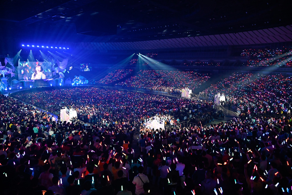 再びの『OPEN THE G☆TE!!!』では、横浜アリーナの後方まで続く楕円形の通路にキャスト陣が散らばり、ファンと近い場所でパフォーマンス。絵森&坂倉による“鬼塚姉妹”が2人並んだ際には鬼塚夏美の特徴的な頭に指で角を作るような“オニナッツ”ポーズを2人で作り、その指で作った角を合わせて楽しむ一幕も。歌唱後にはMCを挟んで伊達からの「歌でもっともっとつながりたい!」との掛け声から楽曲『Sing!Shine!Smile!』を披露して本編を終えた。
