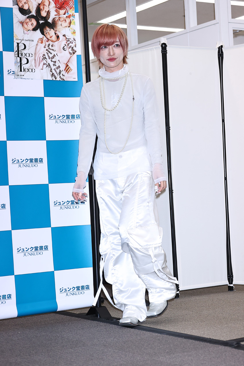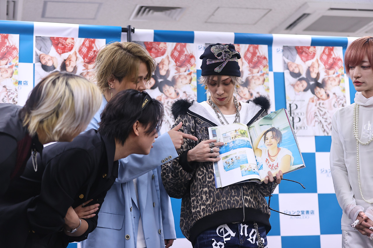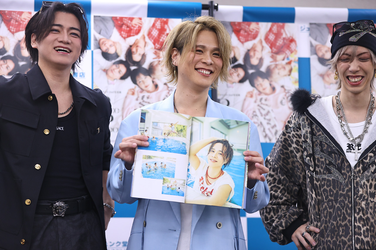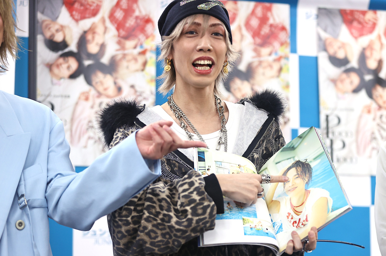 会見はまず記念撮影から行われたが5人わちゃわちゃと話しながらの賑やかなものに。その撮影中に、お気に入りカットを1人1人アピールしていくこととなり、かずぅは自身がバーンと出ているページを指さすと「俺格好いいなって。ピンでいいなと思ったカットが3個あって、それで150点です!」と、猛烈に自分をアピールしつつ「いつもはリアルピース推しだから写真集は逆にピンの自分を観てほしい!」と、グループ愛も忘れずに話した。
