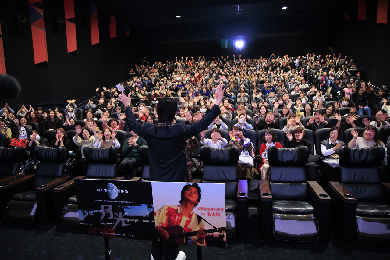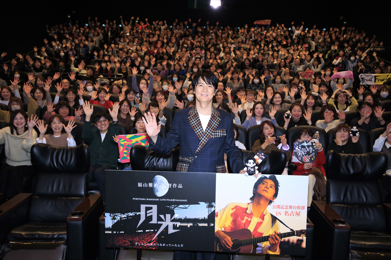 俳優で歌手・福山雅治が2月14日に愛知・名古屋のミッドランドスクエア シネマでライブフィルム『FUKUYAMA MASAHARU LIVE FILM@NAGASAKI 月光 ずっとこの光につながっていたんだ』(監督:福山雅治/配給:松竹)舞台あいさつを開いた。