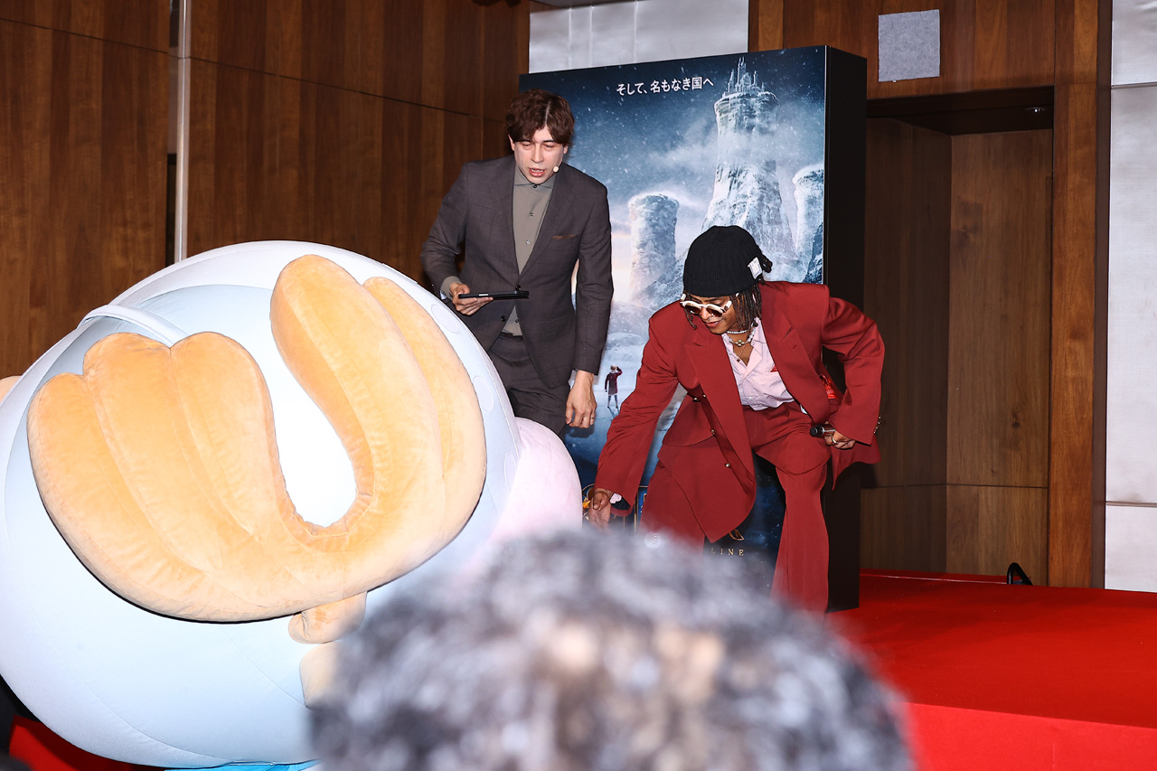 会見開始時間直前には舞台裏から賑やかな笑い声が聴こえ、キャスト間の陽気な雰囲気が伝わってくるなかいよいよ登壇へ。イニャキはニコニコと登場すると、日本語で元気よくあいさつ……というか、元気が良すぎて、マイクに音が乗りすぎてしまい、照れ笑いを浮かべる一幕もあり、さっそく日本の記者たちを和ませ魅了する様子を見せた。