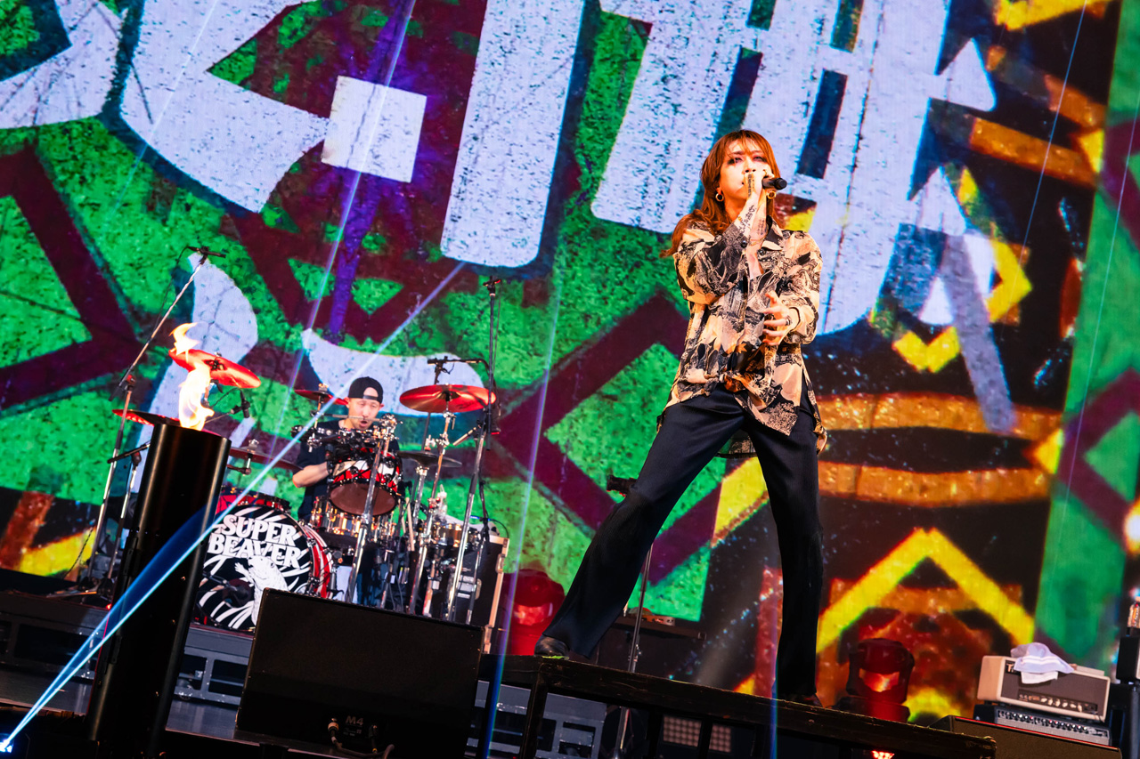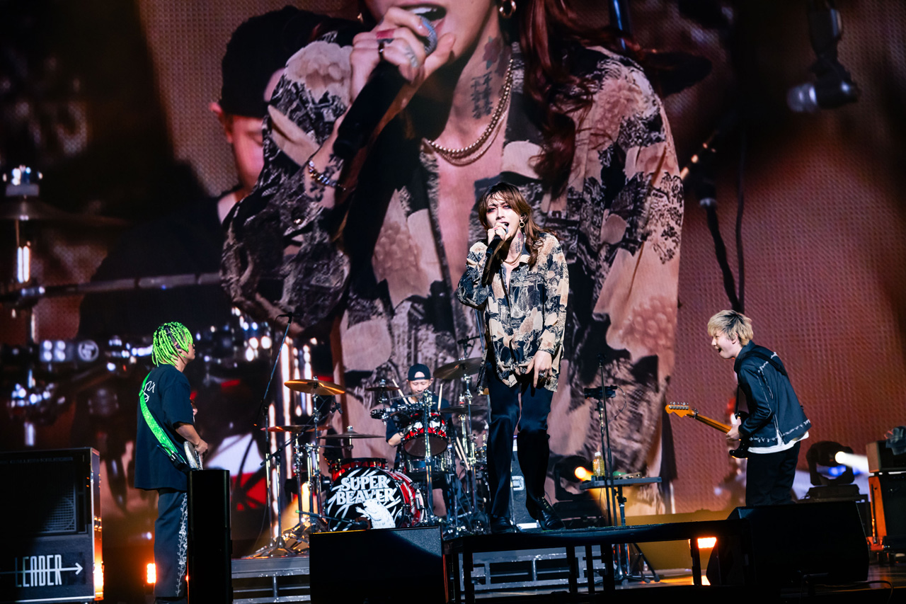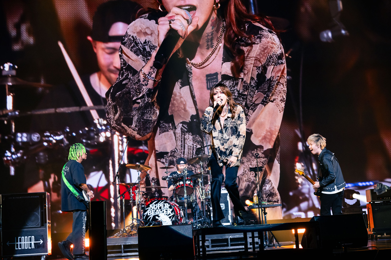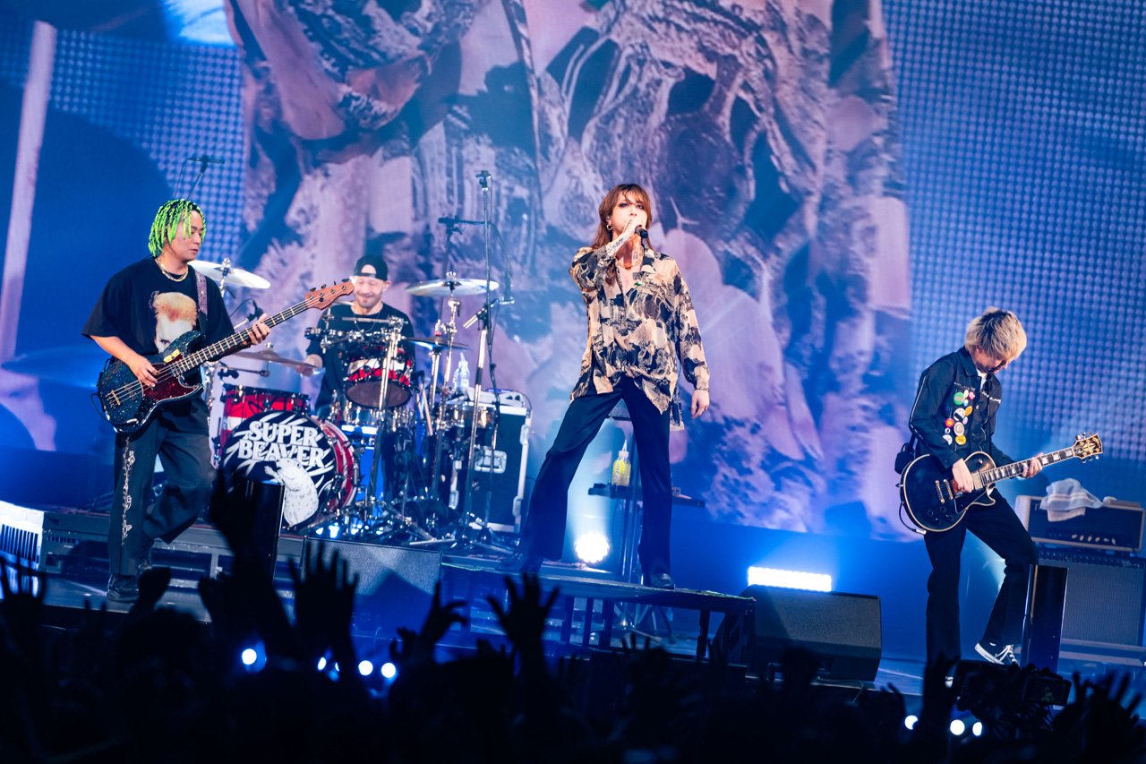 続いて、毎週金曜日のコーナー「ビーバーLOCKS!」を担当している、SUPER BEAVERが登場。“人生をどのように生きるか”という人生の根本に深く問いかける『人として』でスタートすると、「今」と向き合うひたむきさを疾走感ある爽やかなメロディに乗せた『突破口』で会場を大いに盛り上げました。MCでは、Vo.渋谷さんが「いつも俺たちは講師という立場で新入生をやらせてもらっていて、今日はようやく(生徒たちに)会えたって気持ちです。いつも聴いてくれてありがとうございます。今日会場に来た目的は一人一人絶対違う。音楽でひとつになろうぜなんて絶対に言わない。あなたが生きていた証を俺たちは音楽にしようと思ってる。あなたに届くように歌うんで。今日は会えてうれしかったです。」と語りかけ、新しい春を迎えるリスナーを勇気づけました。リスナーも一緒に歌いながらその気持ちにこたえ、ステージと観客席の想いがぶつかりあった40分間でした。