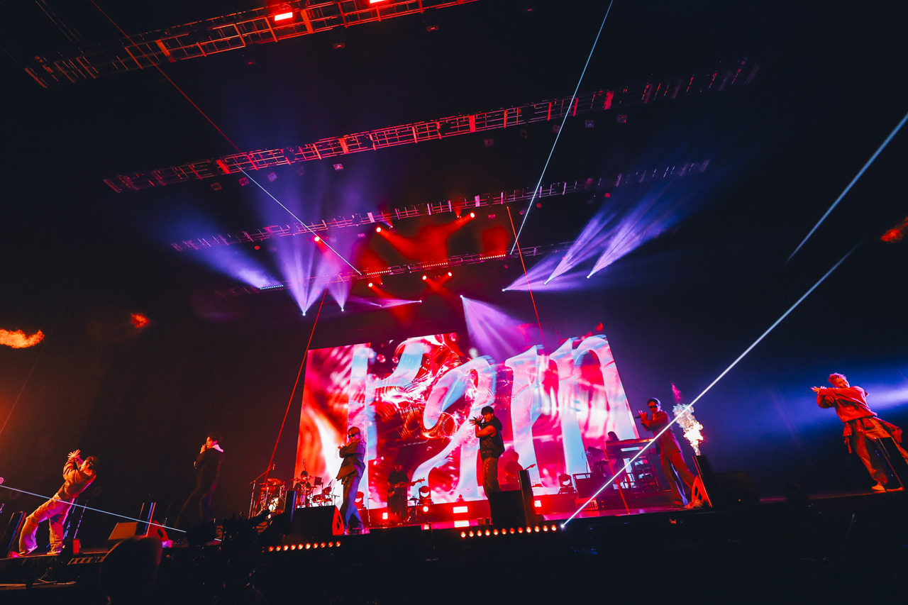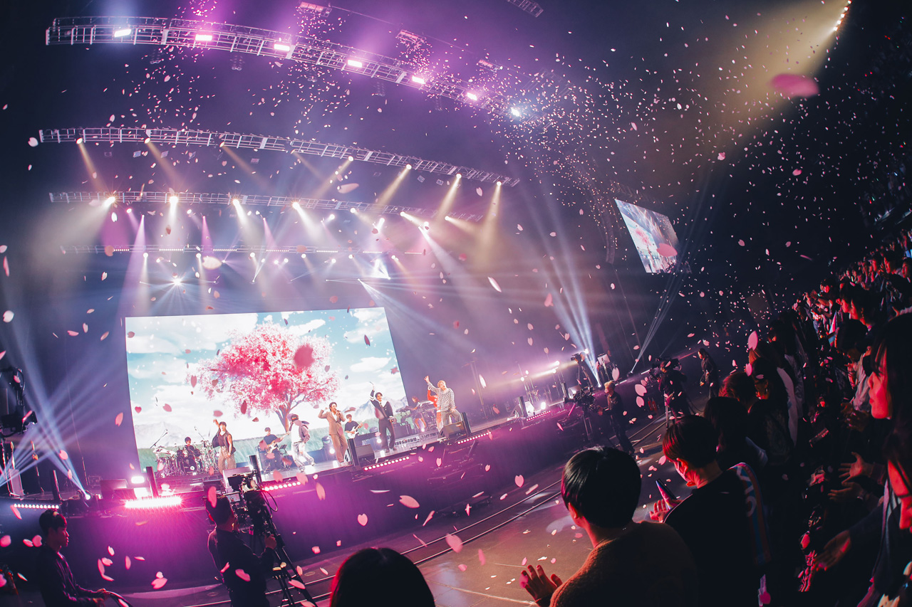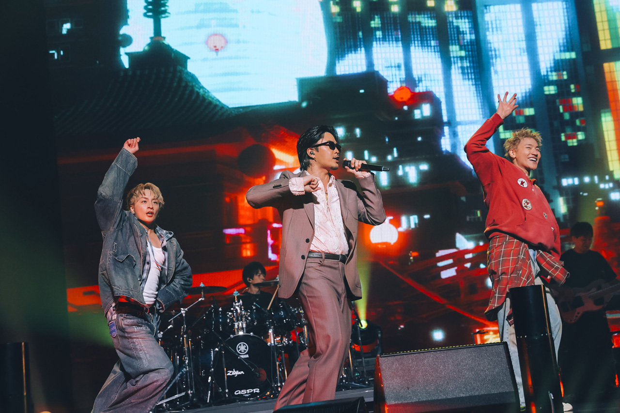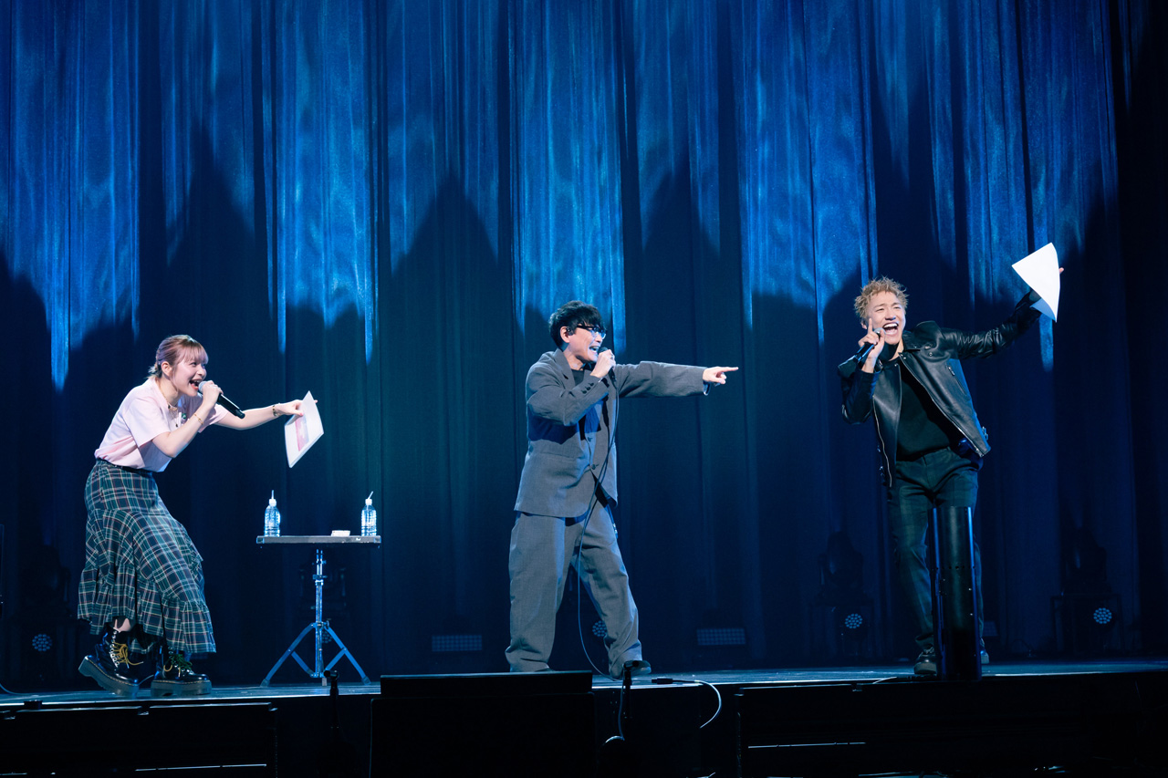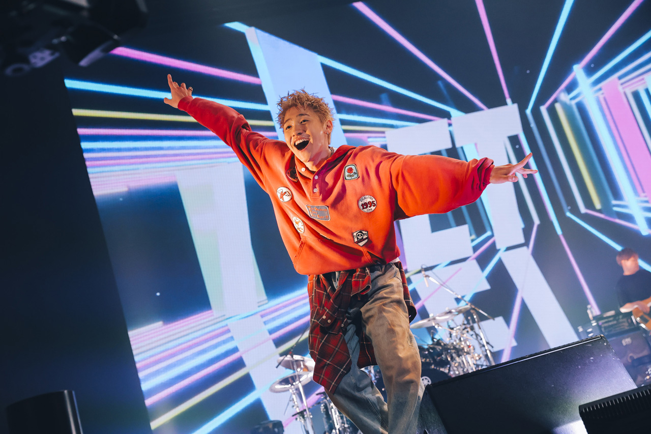 続いて、毎週金曜日のコーナー「ビーバーLOCKS!」を担当している、SUPER BEAVERが登場。“人生をどのように生きるか”という人生の根本に深く問いかける『人として』でスタートすると、「今」と向き合うひたむきさを疾走感ある爽やかなメロディに乗せた『突破口』で会場を大いに盛り上げました。MCでは、Vo.渋谷さんが「いつも俺たちは講師という立場で新入生をやらせてもらっていて、今日はようやく(生徒たちに)会えたって気持ちです。いつも聴いてくれてありがとうございます。今日会場に来た目的は一人一人絶対違う。音楽でひとつになろうぜなんて絶対に言わない。あなたが生きていた証を俺たちは音楽にしようと思ってる。あなたに届くように歌うんで。今日は会えてうれしかったです。」と語りかけ、新しい春を迎えるリスナーを勇気づけました。リスナーも一緒に歌いながらその気持ちにこたえ、ステージと観客席の想いがぶつかりあった40分間でした。