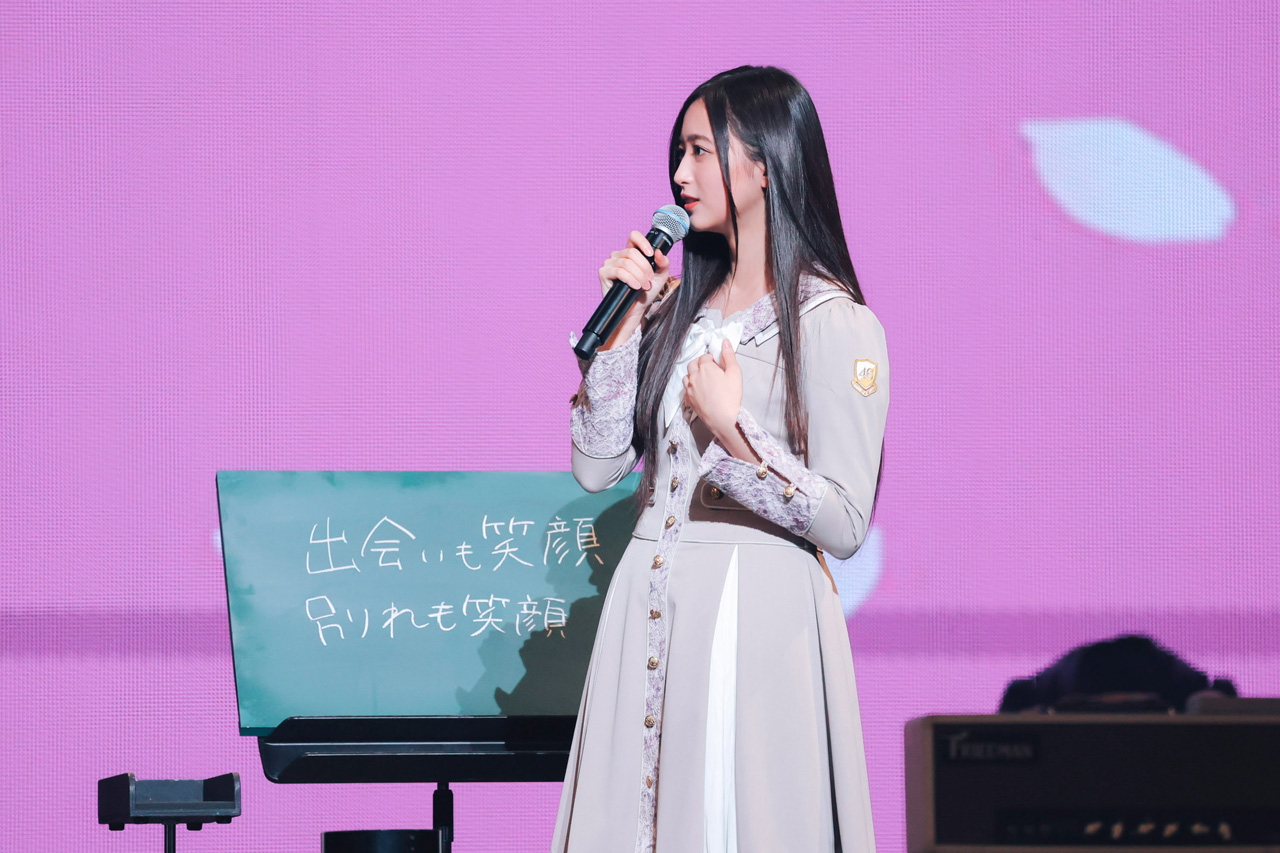 写真とともに『SCHOOL OF LOCK!』との思い出を振り返った後、「この春一歩を踏み出す生徒」に向けて井上さんは「出会いも笑顔 別れも笑顔」、賀喜さんは「全ての出会いと別れに意味がある!」というメッセージを黒板に記しました。それぞれの言葉を選んだ理由について、井上さんは「新しく出会いも別れもある季節ですが、笑顔はすごく大事だなと感じます。こもり校長がたくさん笑ってくださるから、恐れずにパーソナリティをできていたなと思いますし、最初は発言するときのためらいがあったけど、どんどん薄れていきました。この時期たくさん笑ってほしいなという願いを込めて書きました」と話しました。賀喜さんは「私自身の人生では出会いと別れが苦手で、せっかく仲良くなれたのにお別れなの?みたいな想いが強かったんです。でも今考えると、その出会いがあったから良かったと思うこともあったし、(井上)和や校長・教頭、生徒の皆さんと素敵な思い出も作れました。不安もあると思うけど、出会いと別れが生きていく糧になると思うから、頑張ってほしいという想いを込めて書きました」と述べました。