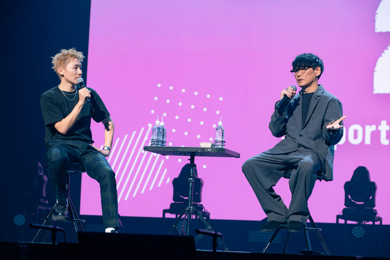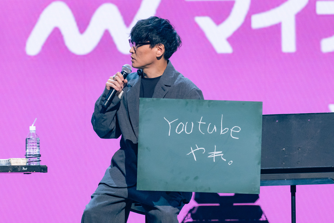次のコーナーでは、「音学の講師」として2012年4月から11年半に渡って授業を担当していたサカナクションの山口一郎さんが登場しました。登場した山口さんは、「髪がツンツンしてるね!」と久々に会ったこもり校長に話しかけ、友達のような会話で会場を笑わせます。