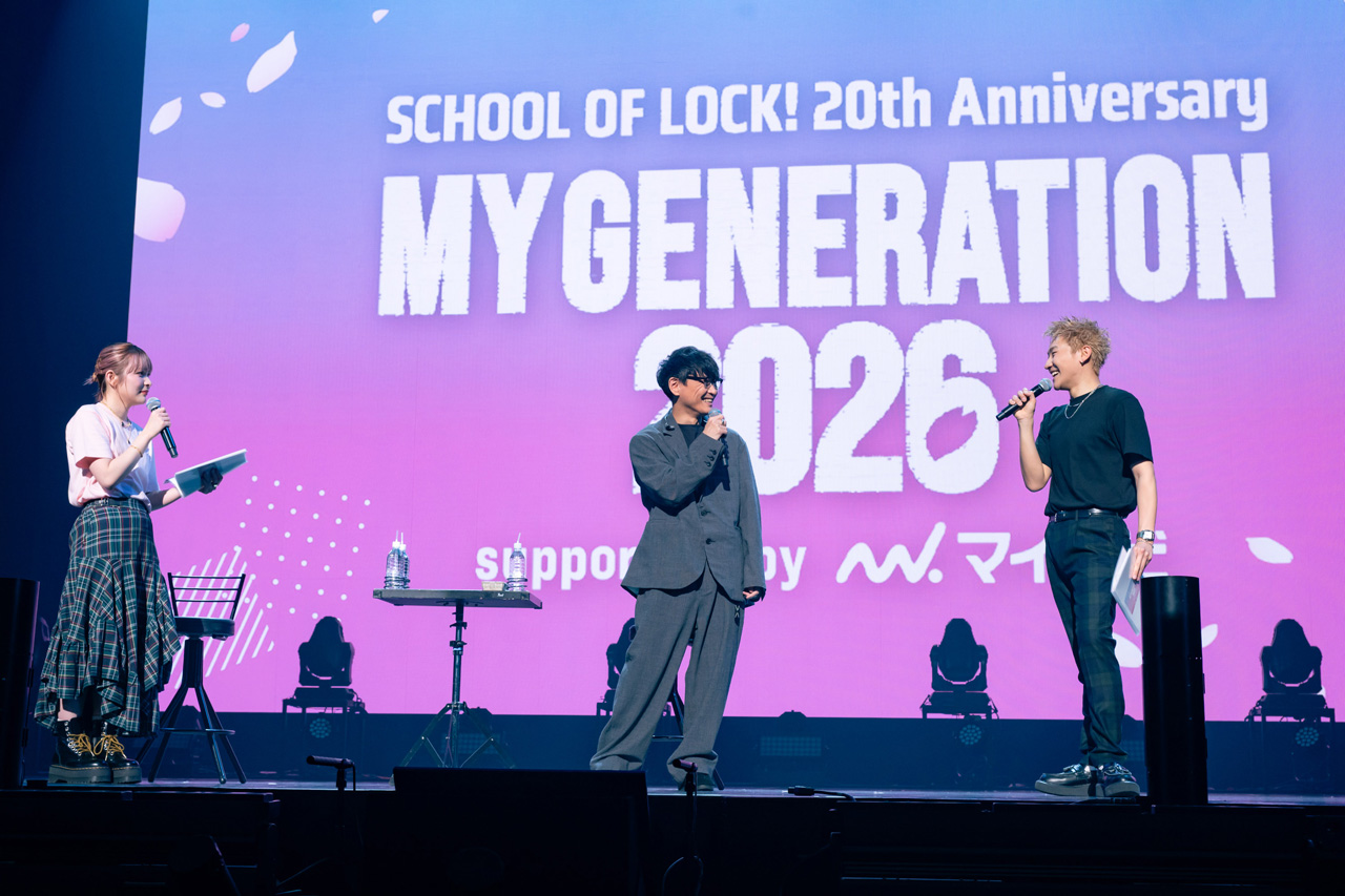 『SCHOOL OF LOCK! 20th Anniversary MY GENERATION 2026 supported by マイナビ』が3月28日に東京ガーデンシアターで開催され6000人がステージを楽しんだ。