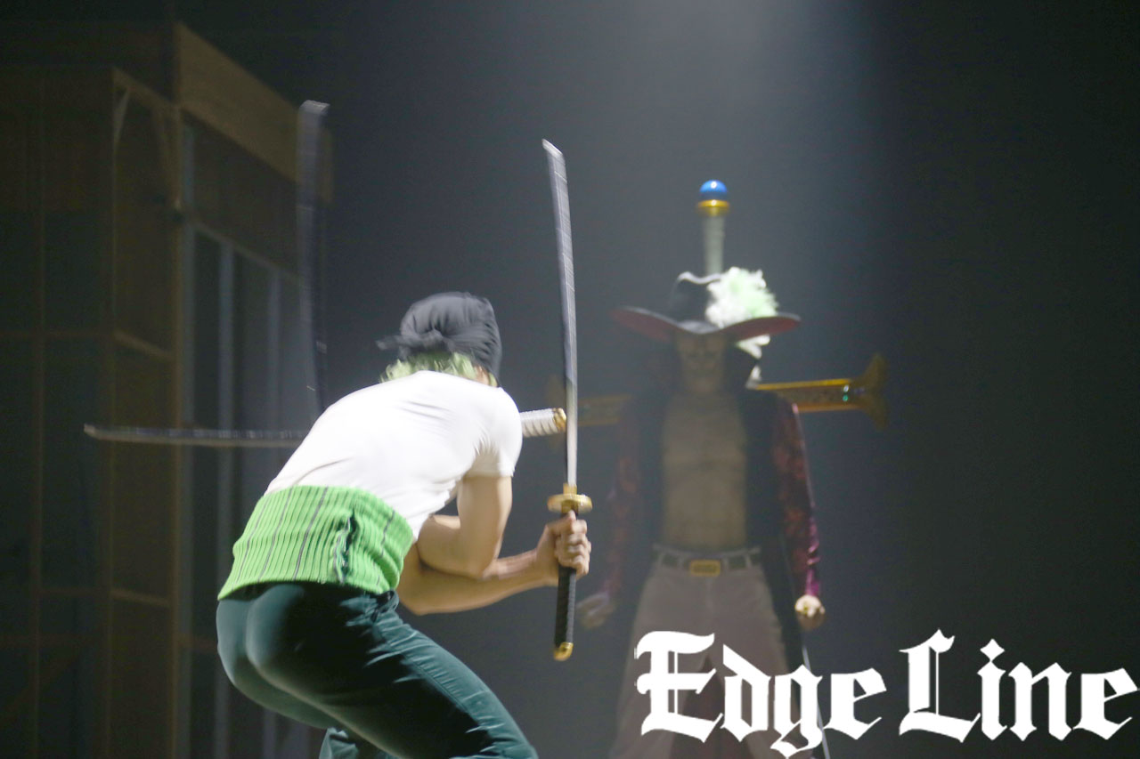 ゲネプロでは、“麦わらの一味”演じるパフォーマーとともに、ミュージシャンも海賊や山賊などに扮しており、演奏しながらアクロバットするという音楽と劇が一体に。仲間たちとの印象的なシーンの再現や、殺陣なども加わり、手に汗握るような興奮の仕上がり。しかも、パフォーマー、ミュージシャンの衣装や小道具なども場面に応じてしっかりと変化があるなど、細部までの作り込みも見られるものとなっていた。