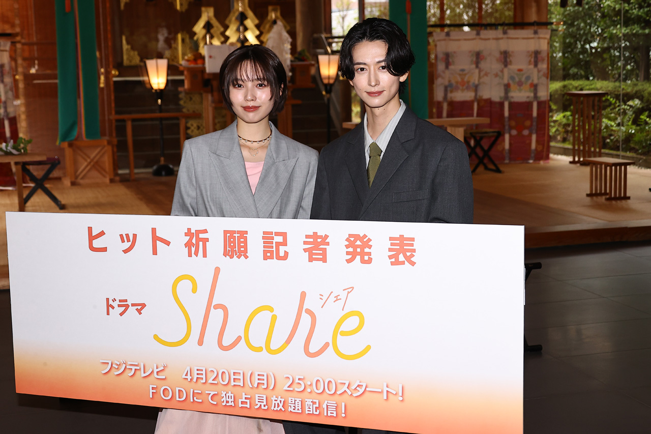 俳優・秋田汐梨、池田匡志が4月7日に東京・赤城神社でW主演ドラマ『share』(シェア)ヒット祈願イベントを俳優・寺本莉緒、藤本洸大、雛形あきことともに開いた。