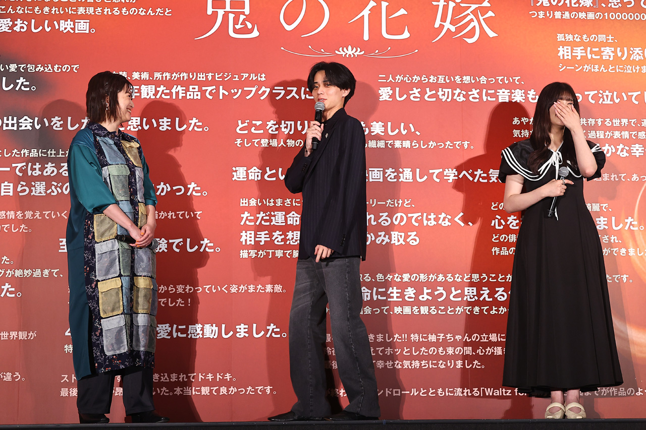 “キンプリ”の愛称で親しまれているアイドルグループ『King & Prince』永瀬廉が4月7日に東京・丸の内ピカデリーで映画『鬼の花嫁』(監督:池田千尋/配給:松竹)鬼ヒット御礼舞台あいさつを俳優・吉川愛、池田千尋監督とともに開いた。