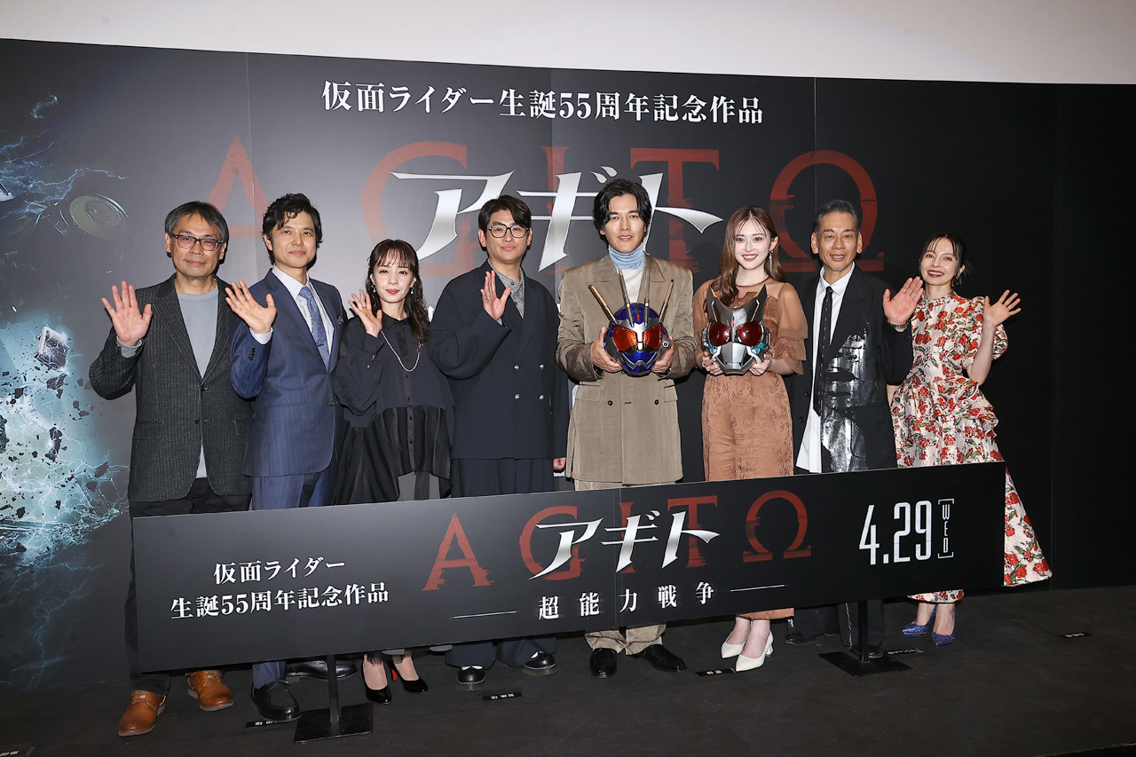 俳優・要潤、賀集利樹、ゆうちゃみ、藤田瞳子、山崎潤、柴田明良、ベッキーが4月9日に映画『アギト―超能力戦争―』(監督:田﨑竜太/配給:東映)完成披露舞台あいさつを田﨑竜太監督とともに開いた。