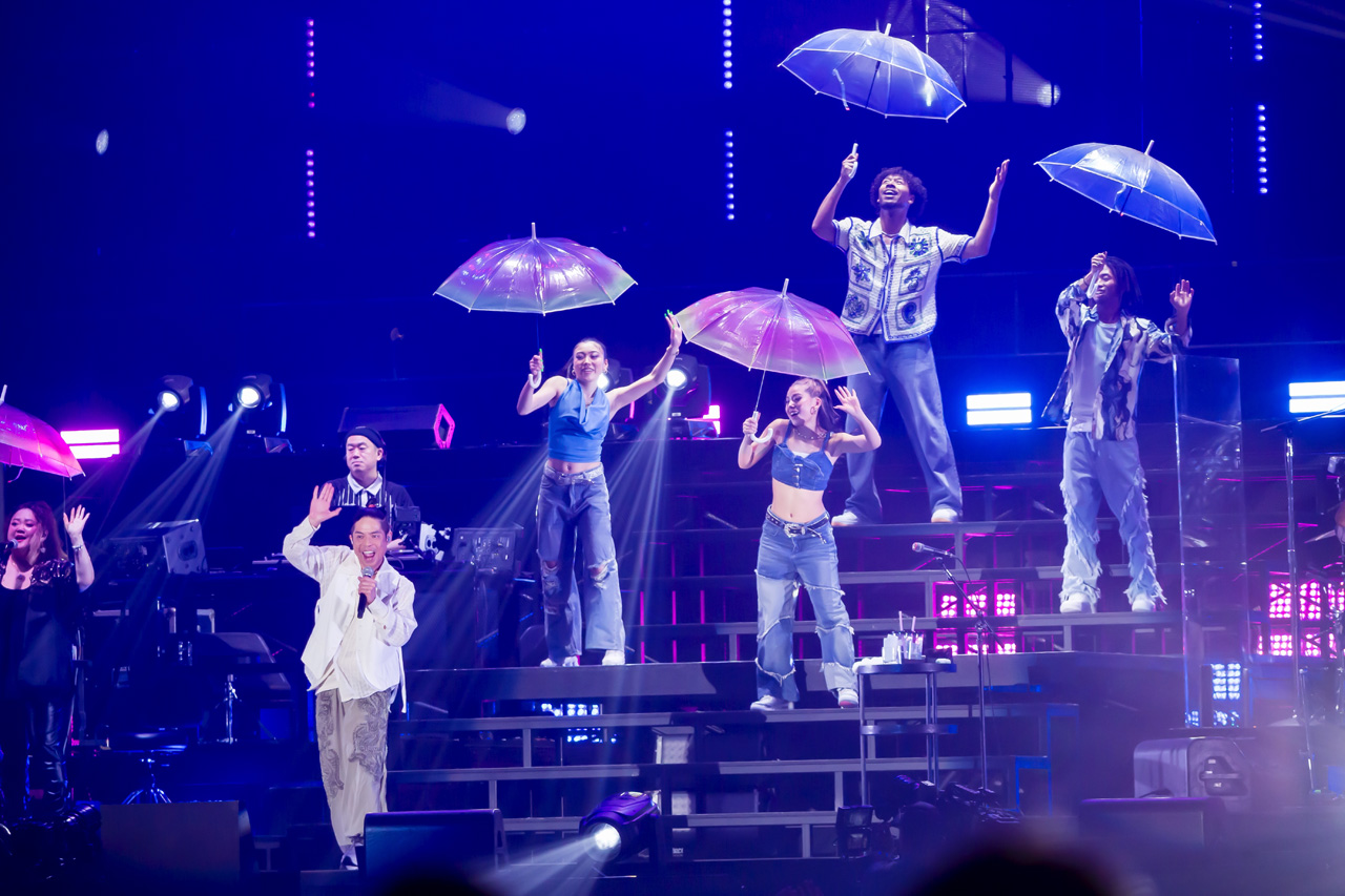 「the Beat of Life」では重厚なリズムにグルーヴ感あふれる力強いサウンドで会場は揺れ、笑顔に包まれた「LOVE RAIN ~恋の雨~」ではダンサーやコーラス達が傘を差し、観客と一緒に体を揺らしてパフォーマンス。一瞬で会場が一つとなる。