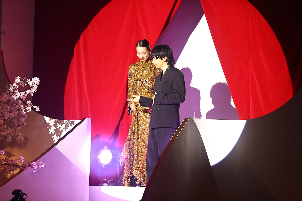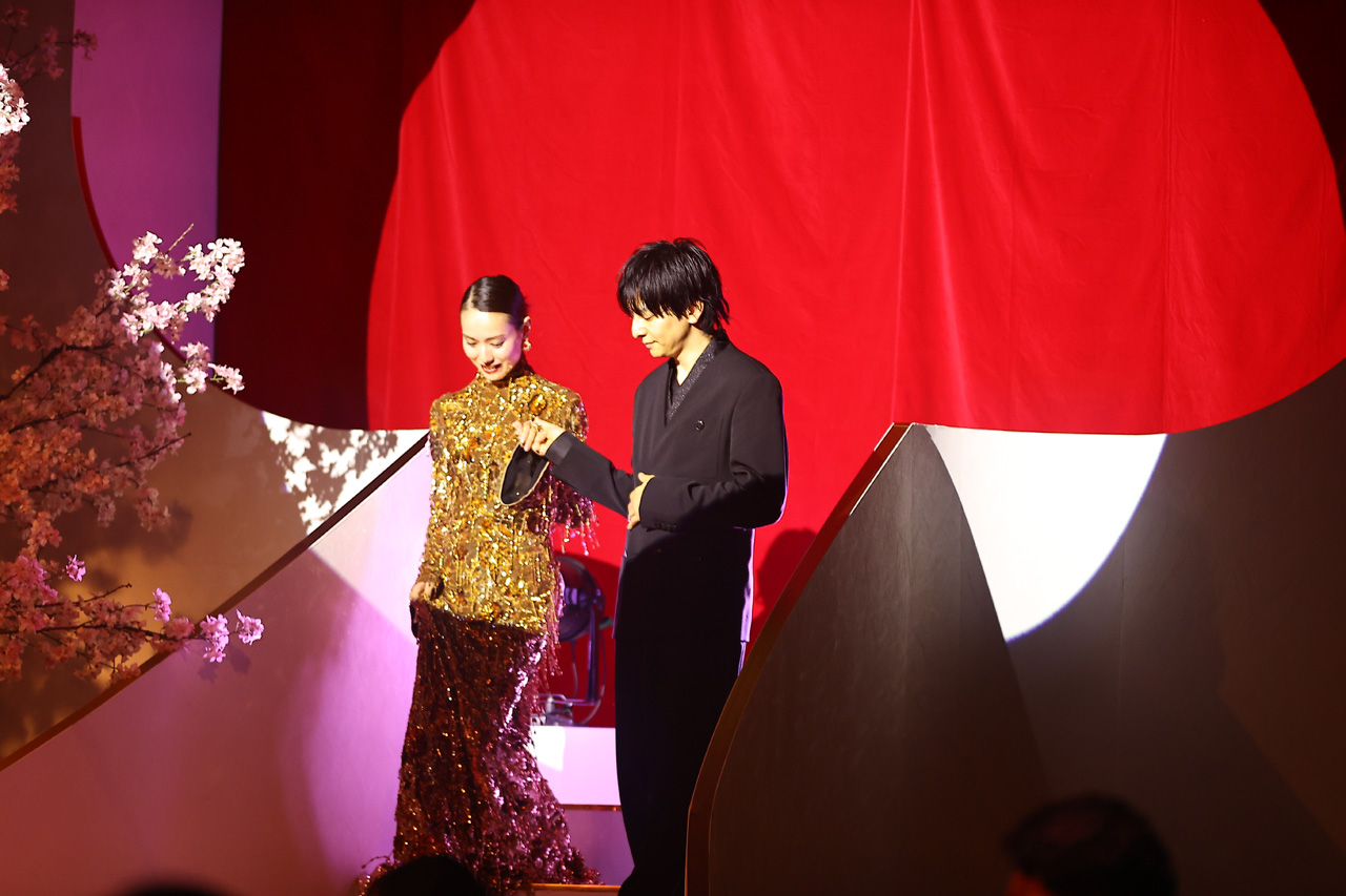 場内は“THE・昭和のナイトクラブ”のような雰囲気でシャンデリアが飾られていたり、開演前から生バンド演もされていたりと、ゴージャスという言葉がびったり。生田は会場後方に作られた階段から戸田に手を貸して降りてくる紳士的な姿が。かと思えば、直後の記念撮影では伊藤とギャルピースを披露したりとお茶目さ全開で、変幻自在な姿を見せた。