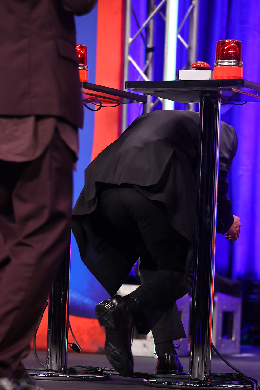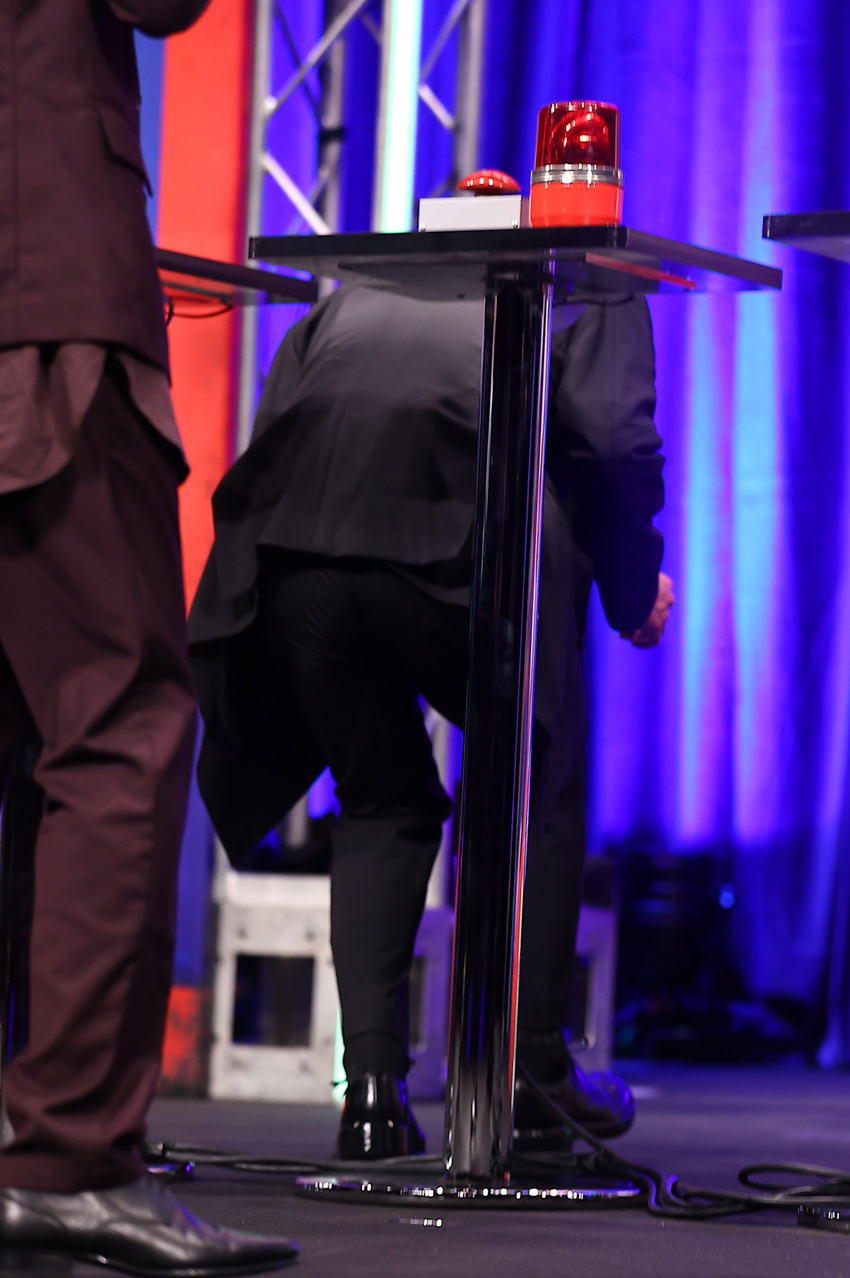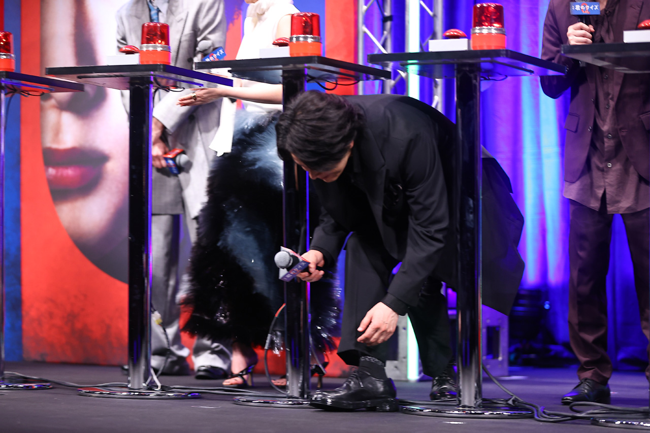 イベント後半には作品にちなんで、大モニターを使用しての早押しインタビュークイズが開催。机が準備された際に、ほかの共演者は机の周囲をまわって回答席につくなか、中村は1人、「ファミレスの子供タイム」とテーブルをくぐってお茶目さを爆発させる。