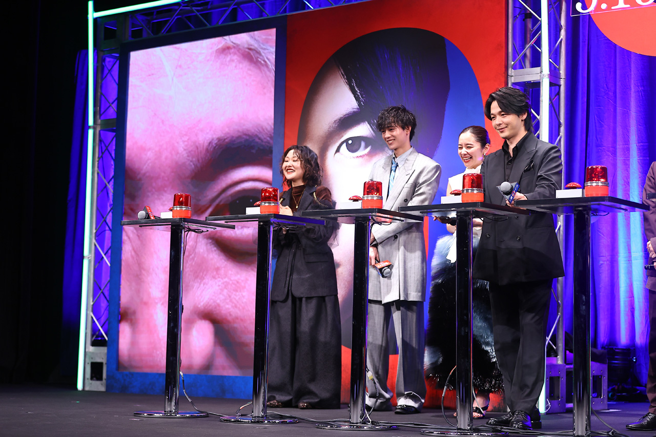 そんな真面目なシーンがあったかと思えば、早押し台の前にもう一度出てほしいと言われた際には再び台の下をくぐって「回転寿司の子供スタイル」と、再び和ませつつ、「この作品は昨年撮影いたしました。2025年、個人的なお話ですが、私が俳優になって20周年でした。神木さんは30周年ですけど(笑)。20周年の1つの集大成のようなものになれば良いなと思いながら撮影していました。頼りがいのある仲間たちがそろっていて、多くは言わなくてもいいかなと思っています。この作品は結構面白いです。自信があります。観てくださった方が楽しんでもらえれば。人生が1つのしおりのようなものになればと思います」と、真面目に締めくくった……かに見えたが、1人再び机の下をもぐって退場と最後の最後まで茶目っ気たっぷりだった。