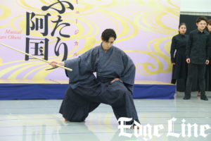 イベント中盤には、今回の会見のためだけにアレンジされた殺陣を玉城、坂元、細貝、中村の4人で披露したり、コーラスキャストらとともに北翔、峯岸らが勇壮な楽曲『いざや、かぶかん!』を声を合わせて熱唱を見せ圧巻といった雰囲気に包まれた。そして北翔から、「出演者43人、平成最後というより次の時代へ向けて若さあふれるエネルギーをぶつけていきたいと思います。私達の仕事は生きる喜びを与える仕事でございます。私達が生き生き、エネルギッシュに舞台を伝えていければと思っております。本日はありがとうございました」と、オーディエンスにあいさつしていた。