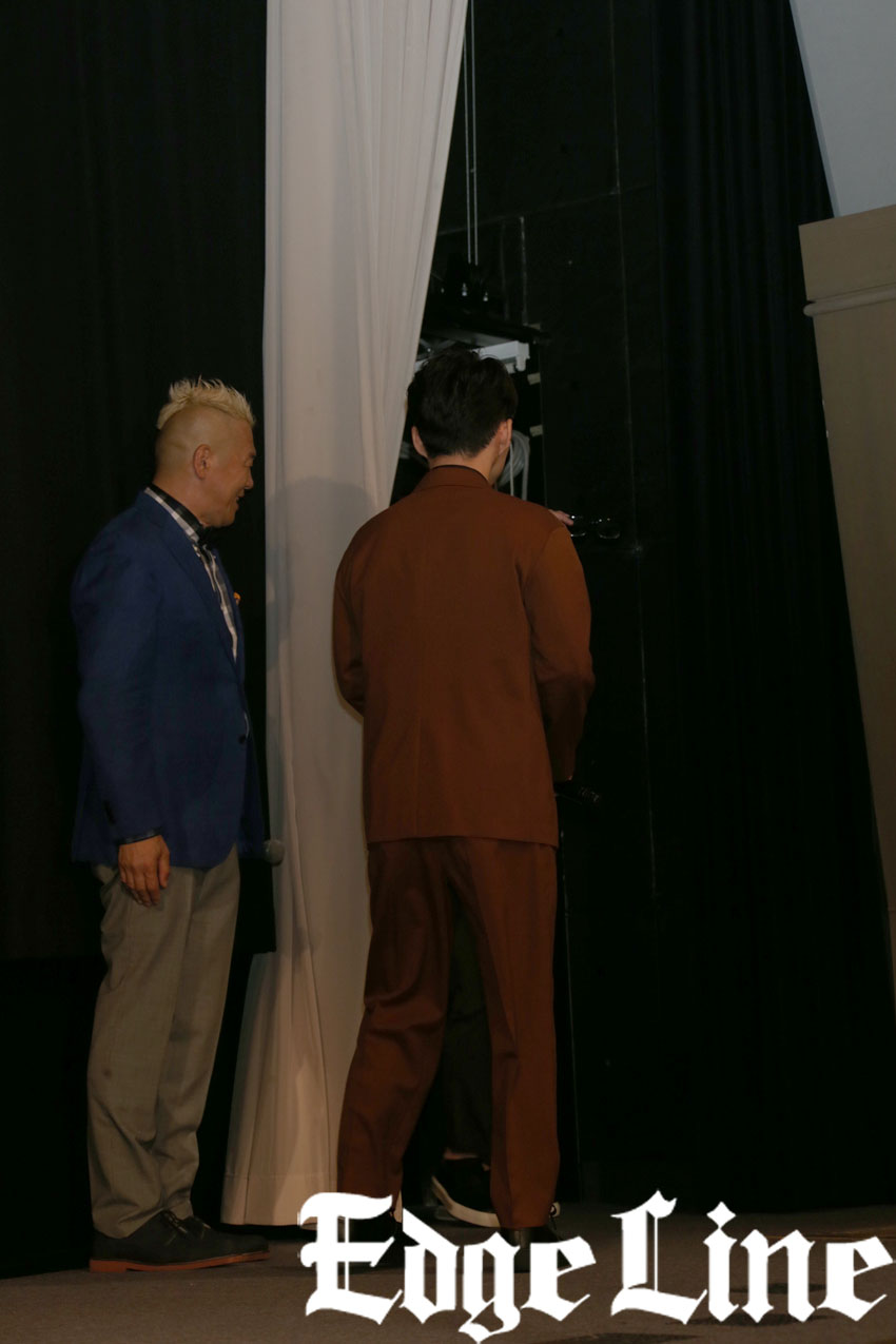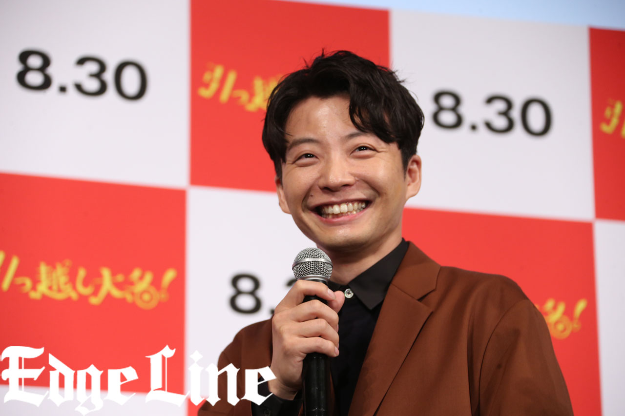 記念撮影ではウドを真ん中に据えようとしてウドを恐縮させたりとワチャワチャしたり、観客と一緒に声出しをして楽しみつつ、「6年ぶりくらいに主演した映画です。共演のみなさんも素晴らしい役者さんばっかりで、お会いしたい人とか、ご一緒したい人ばかりで。撮影も結構長い時間あって休憩時間に笑い合いながら作って。完成品を見たら喜劇にできあがっていて、僕の好きなところです。なんていうんでしょう、現代の日本に生きる人達にも、悩みとかこの頑張りとかが伝わるような、時空を超えて共鳴したりとか、応援したくなったり勇気を持ってもらえるようなものになったと思います」と、呼びかける。