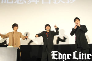 俳優・窪田正孝(29)、鈴木伸之(24)が7日、東京・丸の内ピカデリーで映画『東京喰種 トーキョーグール』(監督:萩原健太郎/配給:松竹)公開記念舞台あいさつを開き、萩原監督とともに、ゲストに本作主題歌『BANKA』を手掛けたソロ・プロジェクト『illion』の野田洋次郎(32)が駆けつけた。