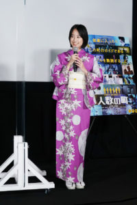 会見前に日本橋福徳神社で大当たり祈願を中村と石橋が行ってからのものに。衣姿で登場した中村と石橋だったが、シックなカラーの浴衣姿の中村は「数年ぶりの浴衣です。腹の座りがどこだかわからなくてちょっとそわそわしています」といえば、爽やかな藤色にもみじをあしらった浴衣で登場した石橋は「昨年の撮影で着て以来です」と、笑みが浮かぶ。しかし、長編映画初挑戦となる荒木監督は「僕には浴衣が準備されてなかったです。着たかったです」としょんぼりしだし、これに中村がすかさず「新人(監督)さんにはないんですね(笑)」と、笑顔でツッコんで場を和ませた。