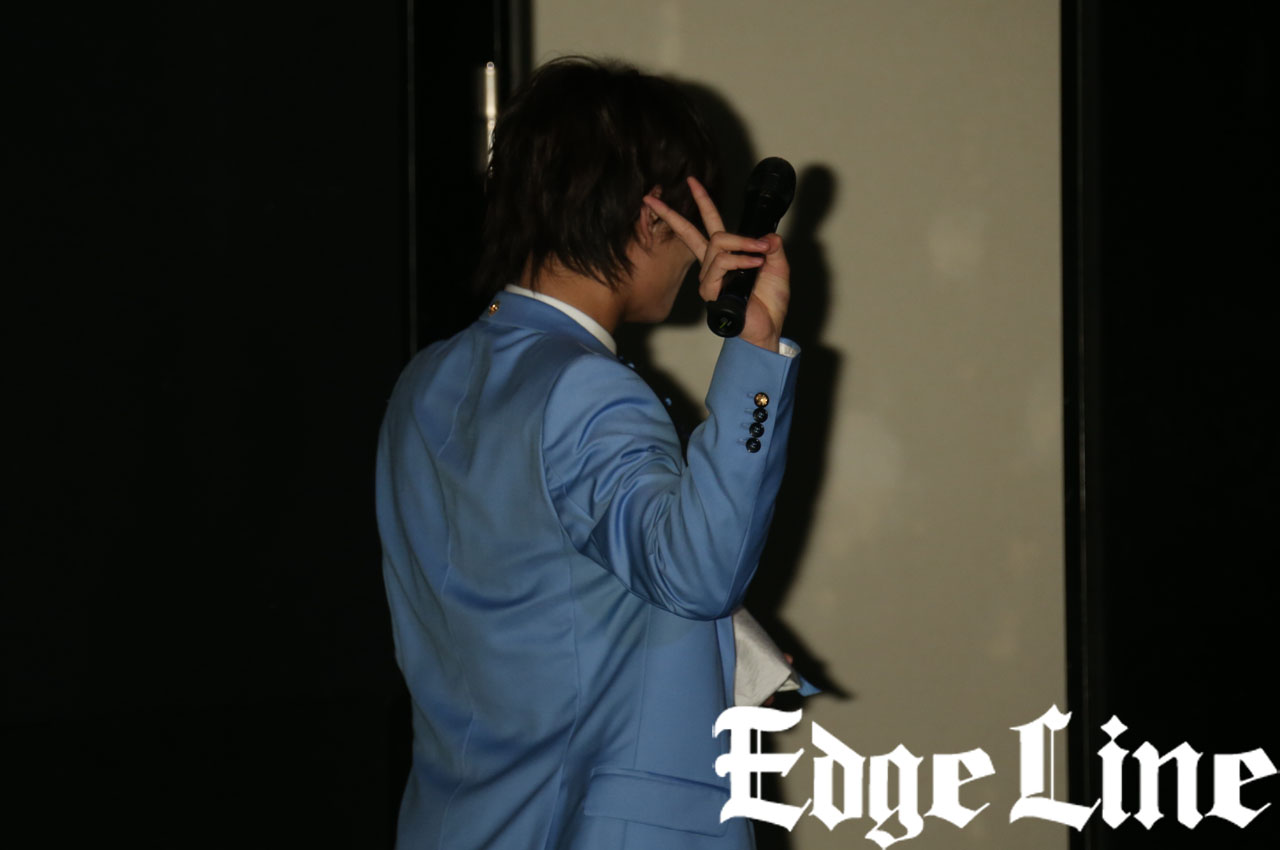 水色のスーツにタイを合わせたコーデで「“胸きみカラー”の水色です」と登場した浮所。緊張のあまり自身の役名を2度噛むご愛嬌もありはにかみつつ、「いままでイベントを何度かイベントをやらせて頂きましたけど、お客さんを前にしたのが本当に嬉しくて。みなさんの前に元気な姿を見せられたことが、本当に本当に嬉しいです!この景色を見て(涙をこらえるのが)危なかったです」と、万感といった様子。そんななか、板垣はリーゼント風のセットアップからか「デヴィッド・ボウイです!……滑りましたね」と、会場を和ませた。