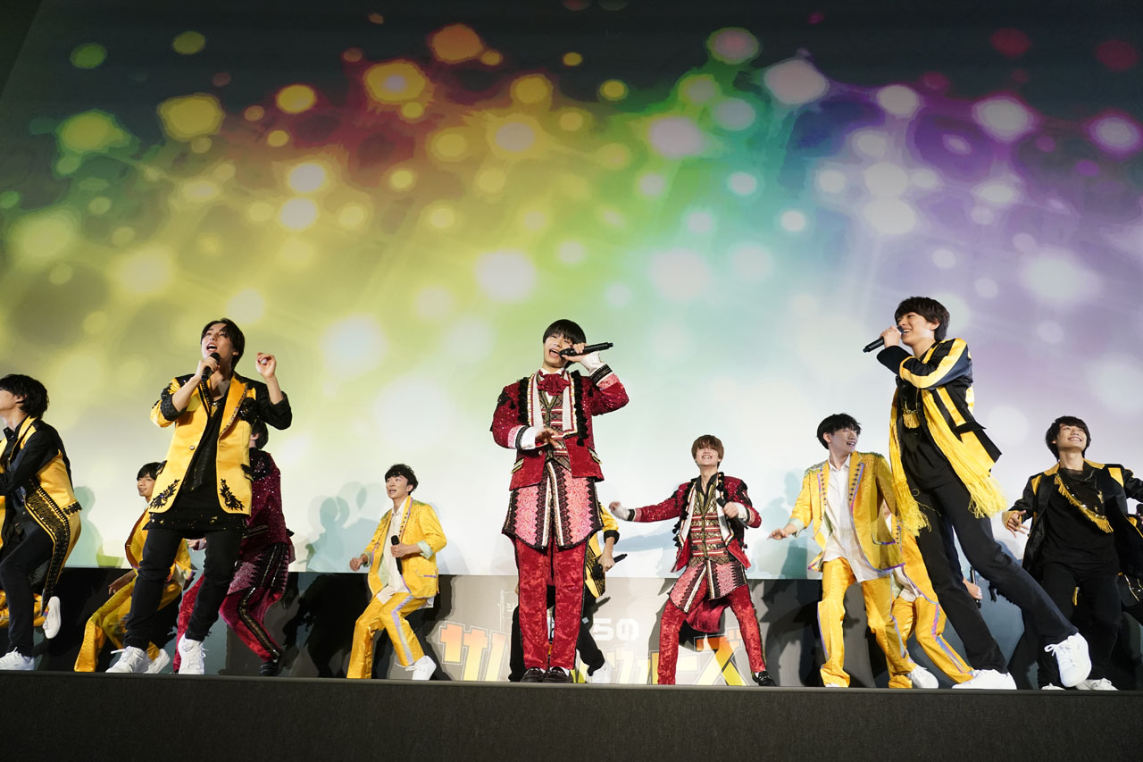 舞台あいさつ後は、“映画と実演”の後半戦に突入。Lil かんさい、少年忍者の楽曲が続き、最後は全員で「勇気100%」を熱唱。舞台挨拶と共に全6曲のパフォーマンスをみせ、来場のお客様に感謝を伝えて幕を閉じた。