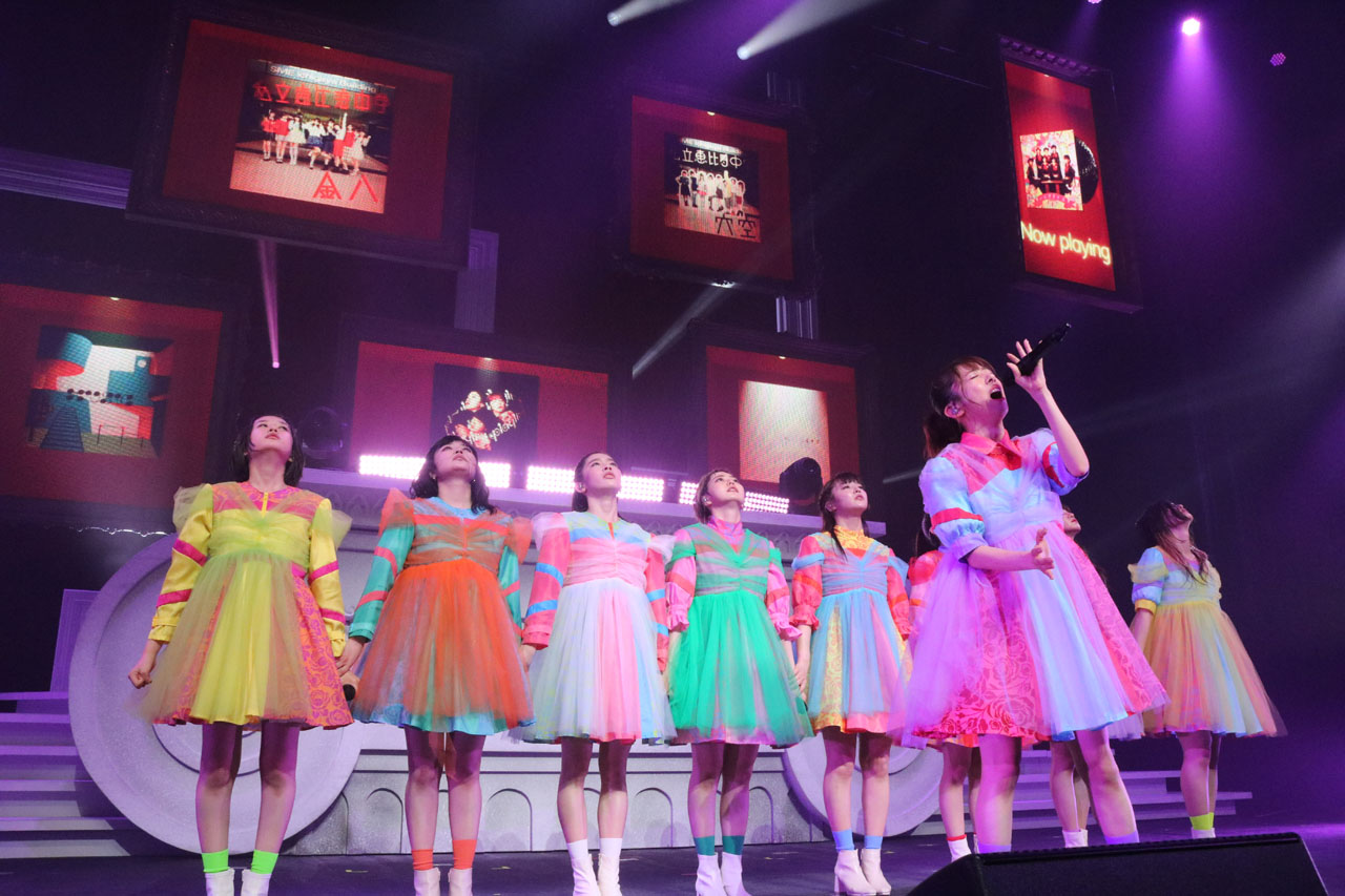 ライブは「全力ランナー」でスタートすると、「シンガロン・シンガソン」、「仮契約のシンデレラ」とエビ中定番曲で会場の士気をあげる。そして7thアルバム収録曲「さよなら秘密基地」を披露し一体感をファミリーに届けた。