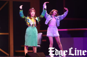 そんな貴城にけいこ場の様子はどうだったか質問が飛ぶと、「最初は何が起こっているのか訳が分からなくて。自分が出てくるところもどうしたらいいのかと思っていたんです。けど、やっていくうちに普通になってきて、どんどん脳が麻痺して(笑)」と、変化していったのだとか。さらに、“イオリ、ユイ、マユ”の3人には女性として見習うところもあるそうで「女子に戻ったら女子として見習おうって」とも語っていた。