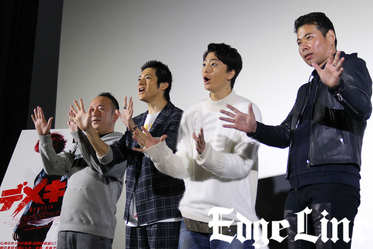 俳優・健太郎(20)、山田裕貴(27)が10日、東京・シネマート新宿で映画『デメキン』(監督:山口義高/配給:AMGエンタテインメント)大ヒット舞台あいさつを脚本を担当した足立紳氏、山口監督と開いた。