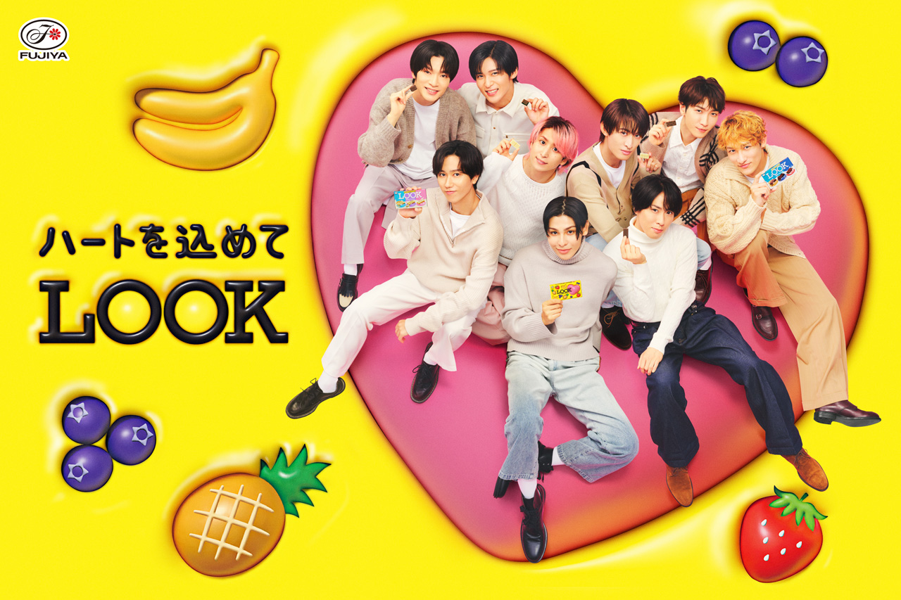 岩本照、深澤辰哉、ラウール、渡辺翔太、向井康二、阿部亮平、目黒蓮、宮舘涼太、佐久間大介によるアイドルグループ『Snow Man』が2020年からブランドキャラクターを務めている株式会社不二家のロングセラーチョコレート『ルック』。