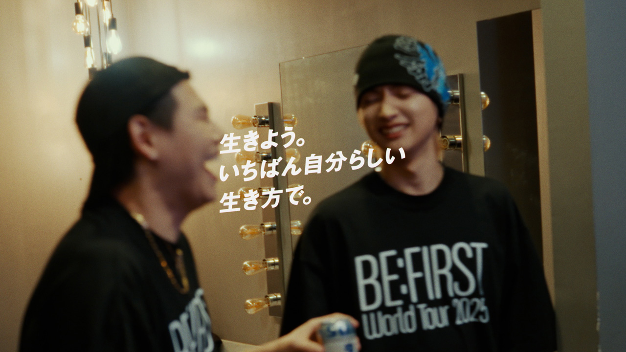ムービーでは、『BE:FIRST』にとって初となるワールドツアーをはじめ、JUNONとLEOによる作詞の打ち合わせやレコーディング現場などに、録音エンジニアとカメラマンに扮(ふん)した2人のCGキャラクターが潜入取材するというストーリーが展開される。普段はなかなか見ることができないワールドツアーや楽曲制作の舞台裏を、印象的な歌詞と軽快なメロディーとともに臨場感たっぷりに映し出し、“本気で挑戦した日” “一生懸命生きた日”に飲む「サントリー生ビール」のうまさや、明日に進む力をくれるその魅力を伝える。なお、JUNON、LEOが作詞を手掛け歌唱もしているプロジェクトソング『BLUE』の一端も感じられるものとなる。