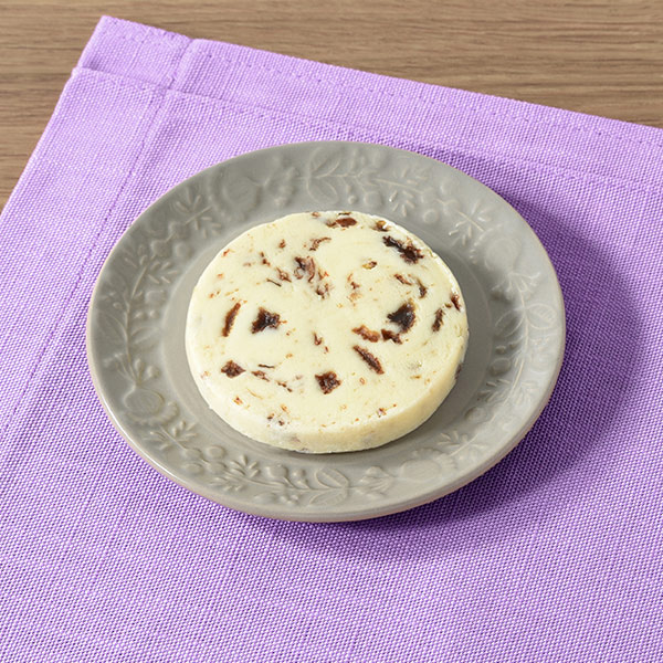 【内容】ホワイトチョコを使用したなめらか食感のクッキーに、ラム酒が効いたレーズンを練りこみました。
