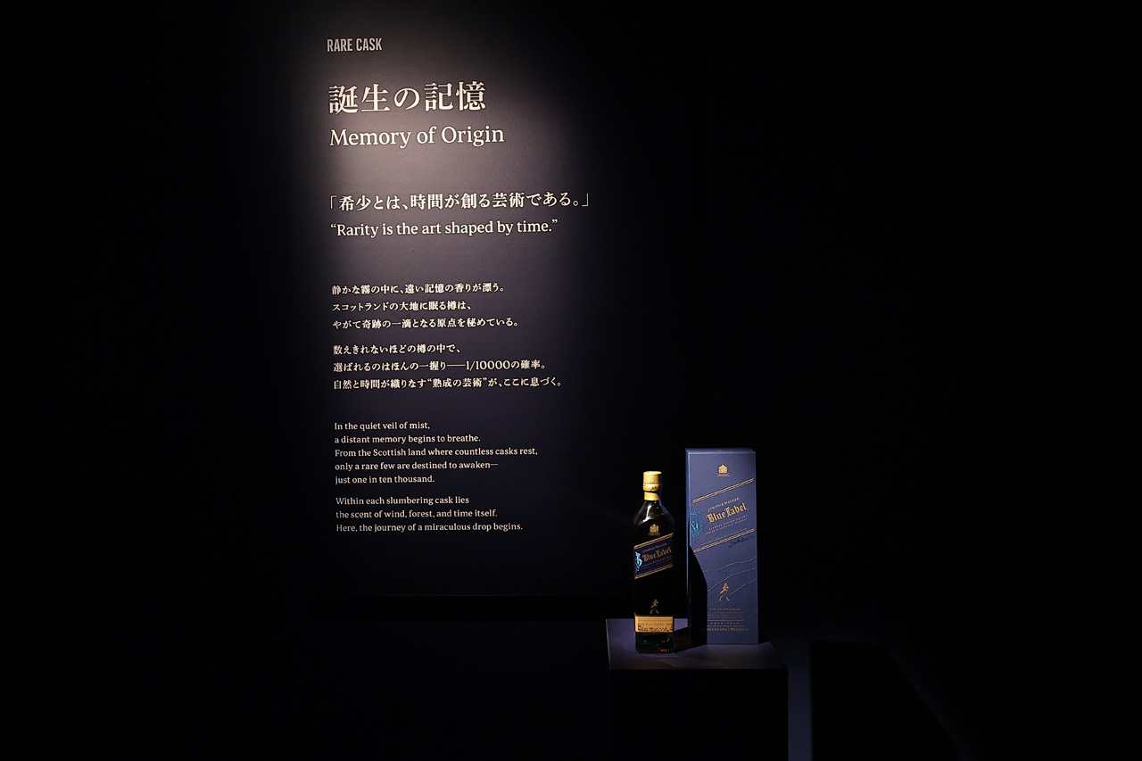 ジョニーウォーカーブルーラベルの『1/10000の奇跡』がテーマ。ジョニーウォーカーが誇るリザーブの中でもおよそ一万樽に一樽の割合でしか選ばれない希少な原酒のみをブ