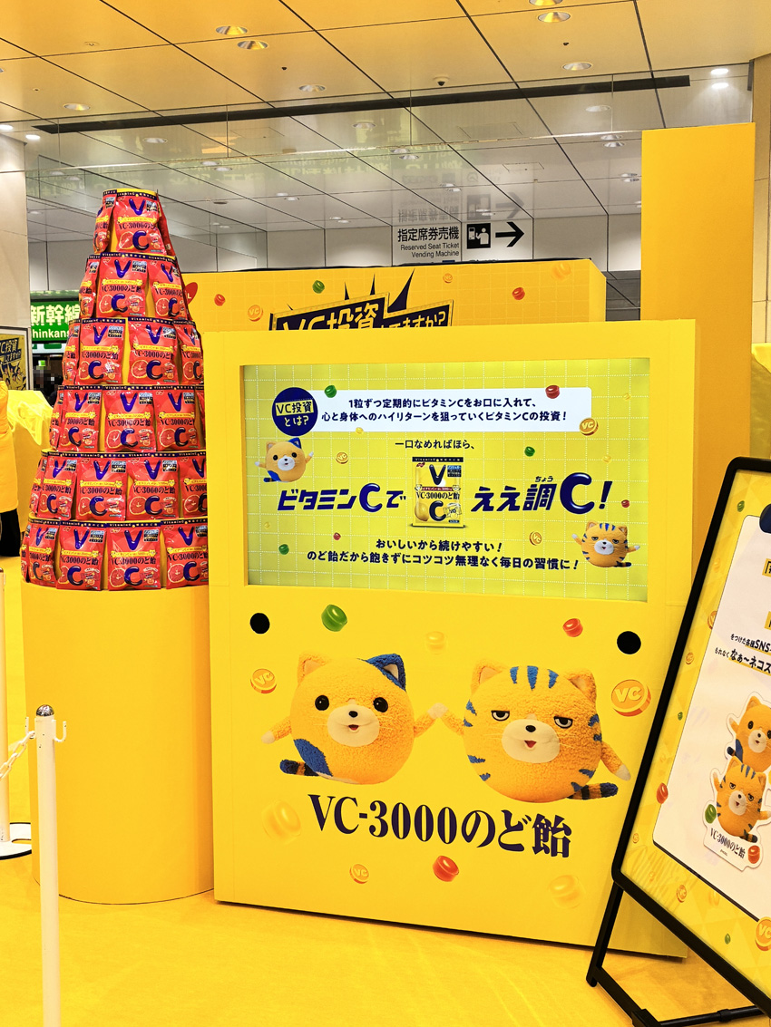 本イベントは、2025年11月10日より実施している『VC投資』キャンペーンの一環。「VC-3000のど飴」を食べて体内にコツコツとビタミンCを補給することを目的とし、正月明けで寒暖差や生活リズムの変化により体調を崩しやすいこの時期に、ビタミンCの継続摂取=「VC投資」の大切さを来場者へ楽しみながら体験してもらうというもの。
