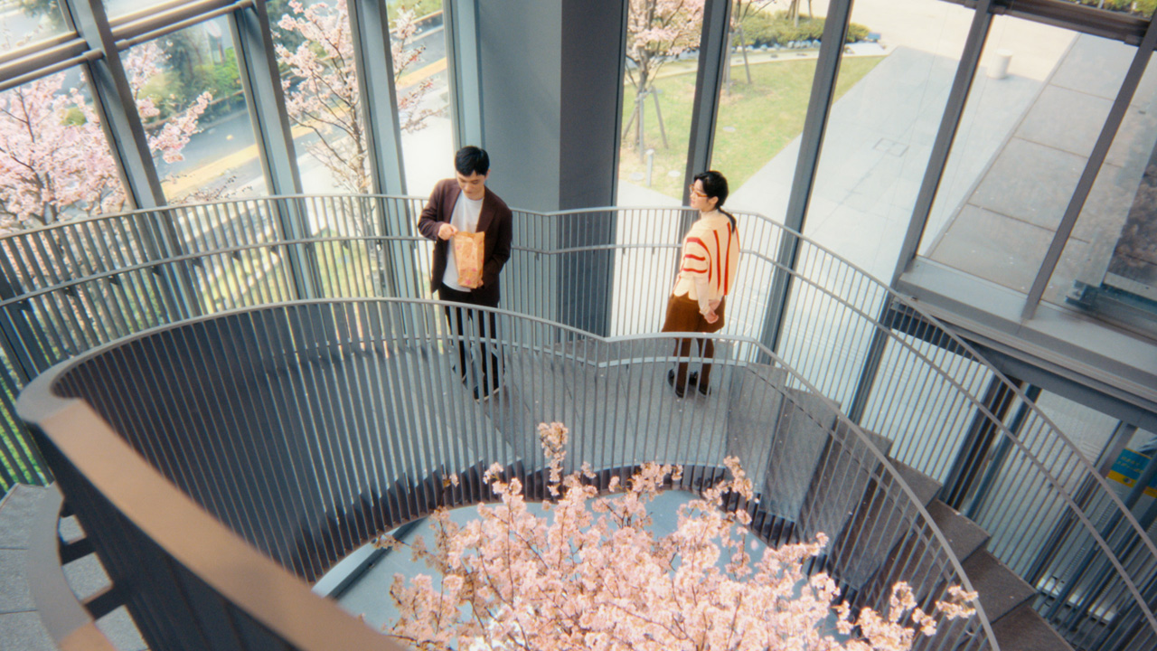 撮影で吉沢はは、春の陽射しを浴びているような優しい笑みを浮かべながらスタンバイ。監督がスタートの合図をかけると、桜の花びらがヒラヒラと舞い散る歩道を軽やかなリズムで歩き出す様子が。