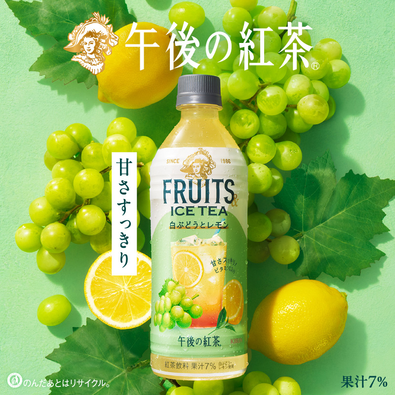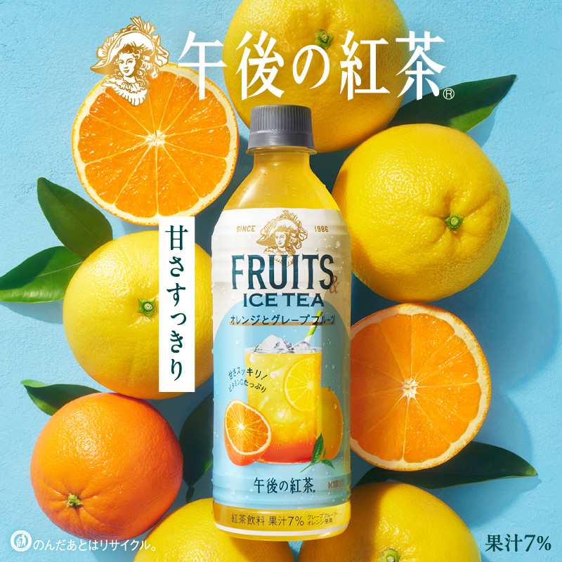 中条とアイドルグループ『Snow Man』“めめ”目黒蓮がCM出演している『午後の紅茶』シリーズ。製品の『キリン 午後の紅茶 FRUITS & ICE TEA』は2025年9月23日の発売初日に販売数量1000万本(2025年9月24日時点の同社出荷数量に基づく)を記録し、その後も好評で販売翌月に2025年の年間販売予定数量の9割となる2000万本(2025年10月3日時点 当社出荷数量に基づく)を達成し、発売から約4ヶ月で5000万本(2026年2月3日時点の同社出荷数量に基づく)を達成。2025年12月号の『日経トレンディ』の「2026年ヒット予測 飲料部門」に入選、『日本食糧新聞社』制定「2025年度食品ヒット大賞 優秀ヒット賞」を受賞している。なお、『キリン 午後の紅茶 FRUITS & ICE TEA』においては、TVCMは放送がなく目黒のビジュアルやOOH、デジタル広告のみで展開もされた。