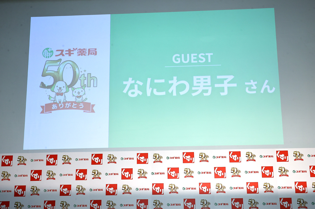 CMと同じ衣装で登場したメンバーたち。今回の起用に大橋から「嬉しい気持ちと、僕たち『なにわ男子』も50周年……」と思わず口がスベって、他のメンバーから総ツッコミが入るなか気を取り直して「僕たち『なにわ男子』も5周年ということでスギ薬局さんの50周年と縁を感じているので、僕たち精いっぱい頑張ります!」と、意気込んだ。