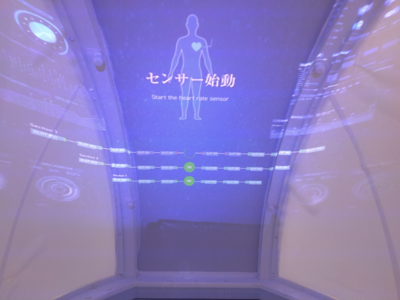 たとえば緊張している方にはリラックスをさせるような映像を。逆に冷静な方へは興奮を誘うような映像が流れ、交感神経と副交感神経をスイッチングするようにしている。なお、洗浄中に上映される没入感たっぷりの3つの映像が用意されているが、この映像は全部サイエンスが1から制作したものだそうで、人間洗濯機にかける思いの一端が窺える。この映像は『ミライ人間洗濯機』での体験を通してでしか観ることはできないといい、これも制作費の1億円に含まれているのだそうだ。
