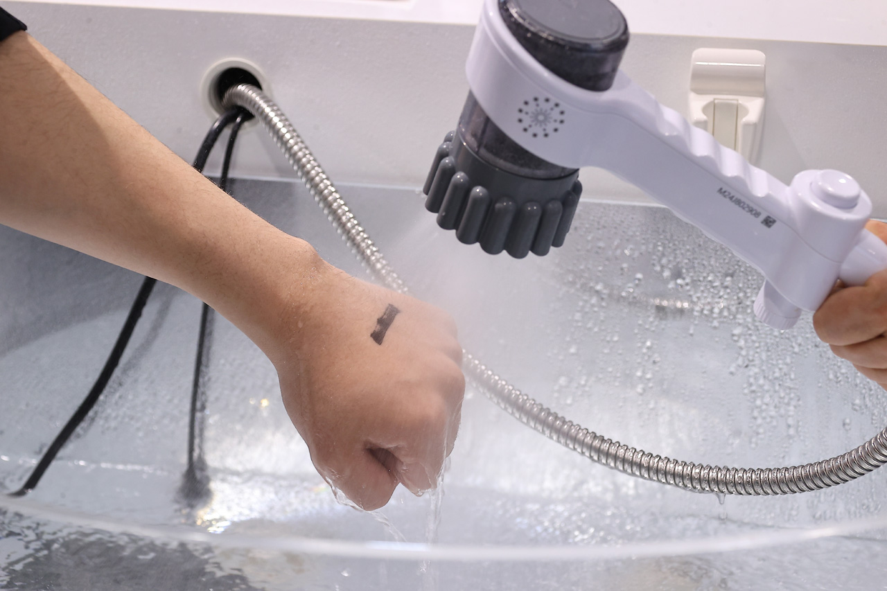 しかしながら『ミライ人間洗濯機』を体験できなかったという方も多くいたかもしれない。そこで、サイエンスでは大阪ヘルスケアパビリオ内に宇宙シャワーブースを出展。そこで宇宙シャワーにも活用されるファインバブル(※)という極小の水と空気の気泡を活用したミラブルテクノロジーの洗浄体験を提供。ミラブルテクノロジーは『ミライ人間洗濯機』のシャワーにも活用されており、手のみの体験ではあるが『ミライ人間洗濯機』と同じ洗浄体験ができ、現地で手が驚くほどスベスベになったという方もいたのではないだろうか。