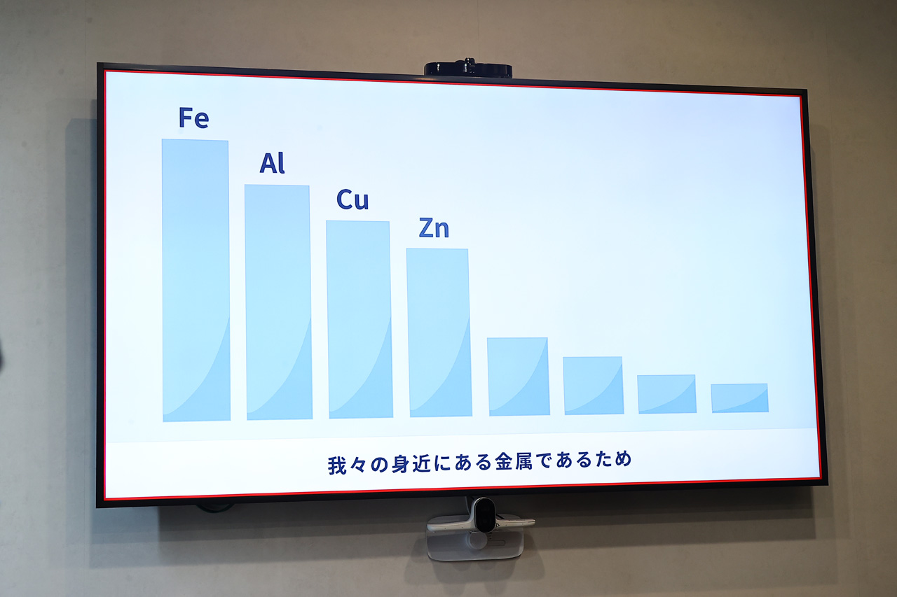 フロー型亜鉛空気電池技術の技術的に優位な点は大きく3つ。1つ目は、現在リチウムが使われた技術が主流になっているが、リチウムが産出国や精製国が限られることから高価で、需給ひっ迫のリスクがある。そうしたリチウムを使わず、亜鉛を使用するフロー型亜鉛空気電池技術は、多くの地域で産出・精製されるため、安価で供給の安定が見込めるという。