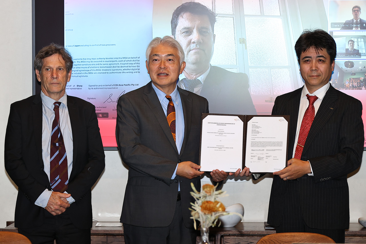 その後交わされた覚書は、クィーンズランド州政府駐日北東アジア統括代表の安達健氏の立ち会いの下に開催。ESI Asia Pacific Pty Ltd DirectorのStuart Parry氏はオンラインで参加となった。