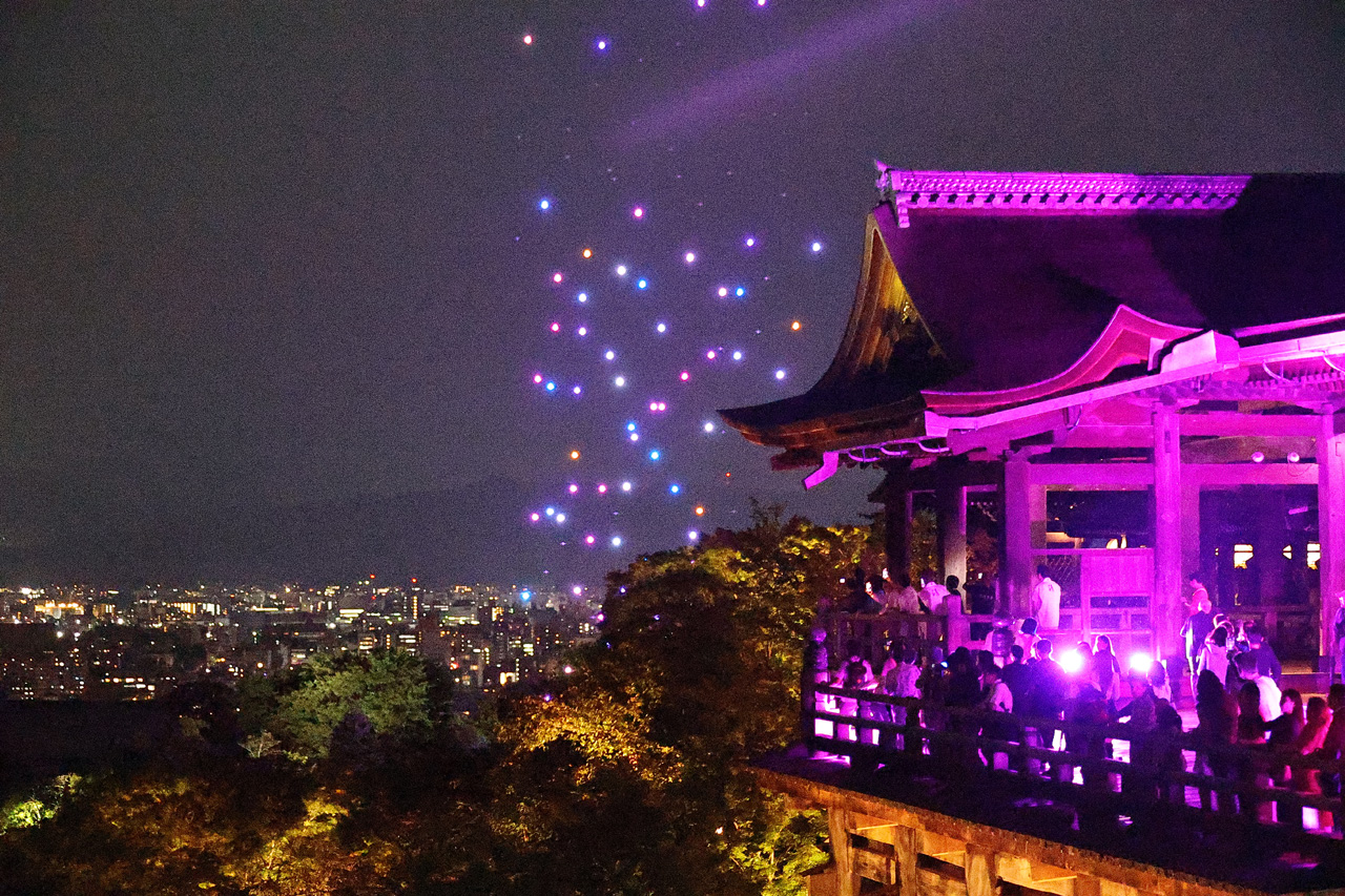 京都・清水寺 乳がんない世界へ願いを込め……ドローン360機でピンクリボンマーク18