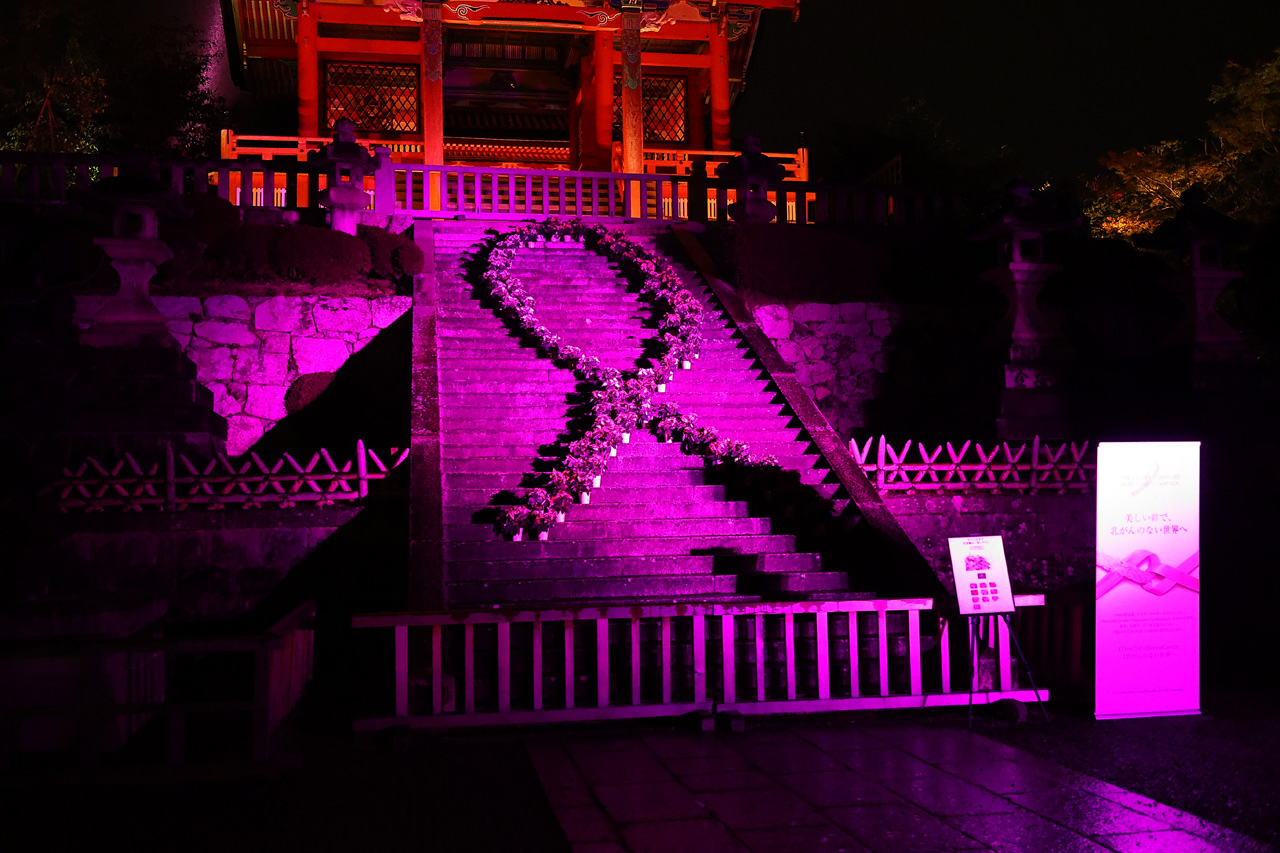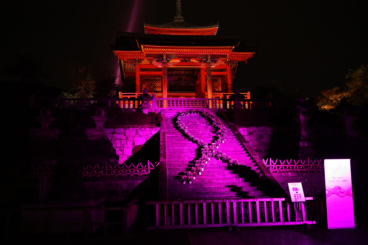 昨年、この活動に賛同したユネスコ世界遺産の清水寺が、乳がんのない世界の実現に向けた願いを込めピンクに彩った。その際に清水寺で初めてとなるドローンショーも行われ、話題となった。
