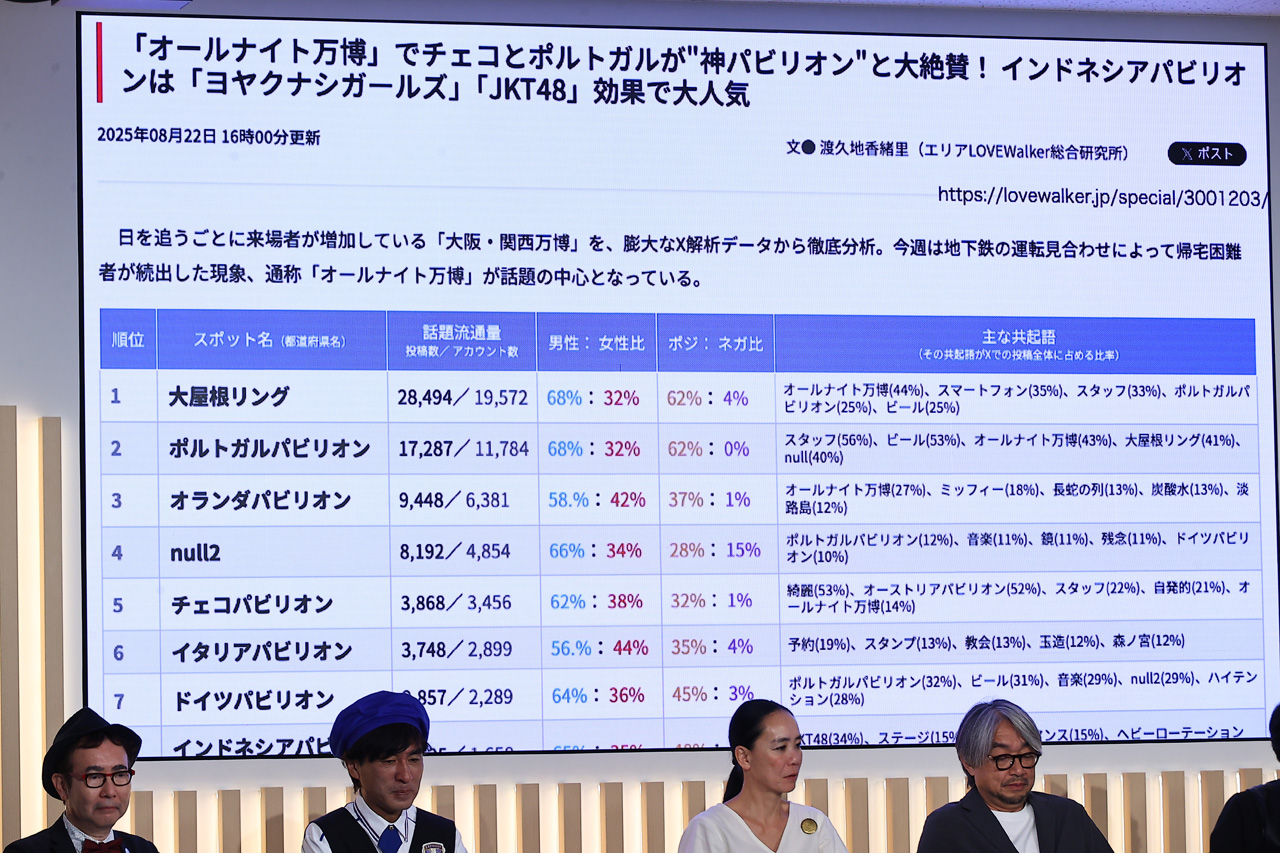 そんななかでも、『ヌルヌル』は「“屈強な万博市民”に支えられている」という落合氏。その『屈強な万博市民』について落合氏は「(携帯)椅子を持ってどこにでも現れる最強の市民がいるんです。彼らによって、万博はありがたいことに成り立ったんだなって」と自身の実感を語る。さらに「私が出ていって、花火をしたり一昨日もカナダ館に(DJイベントで)行ったり」ということも盛り上げに華を添えたそうだ。