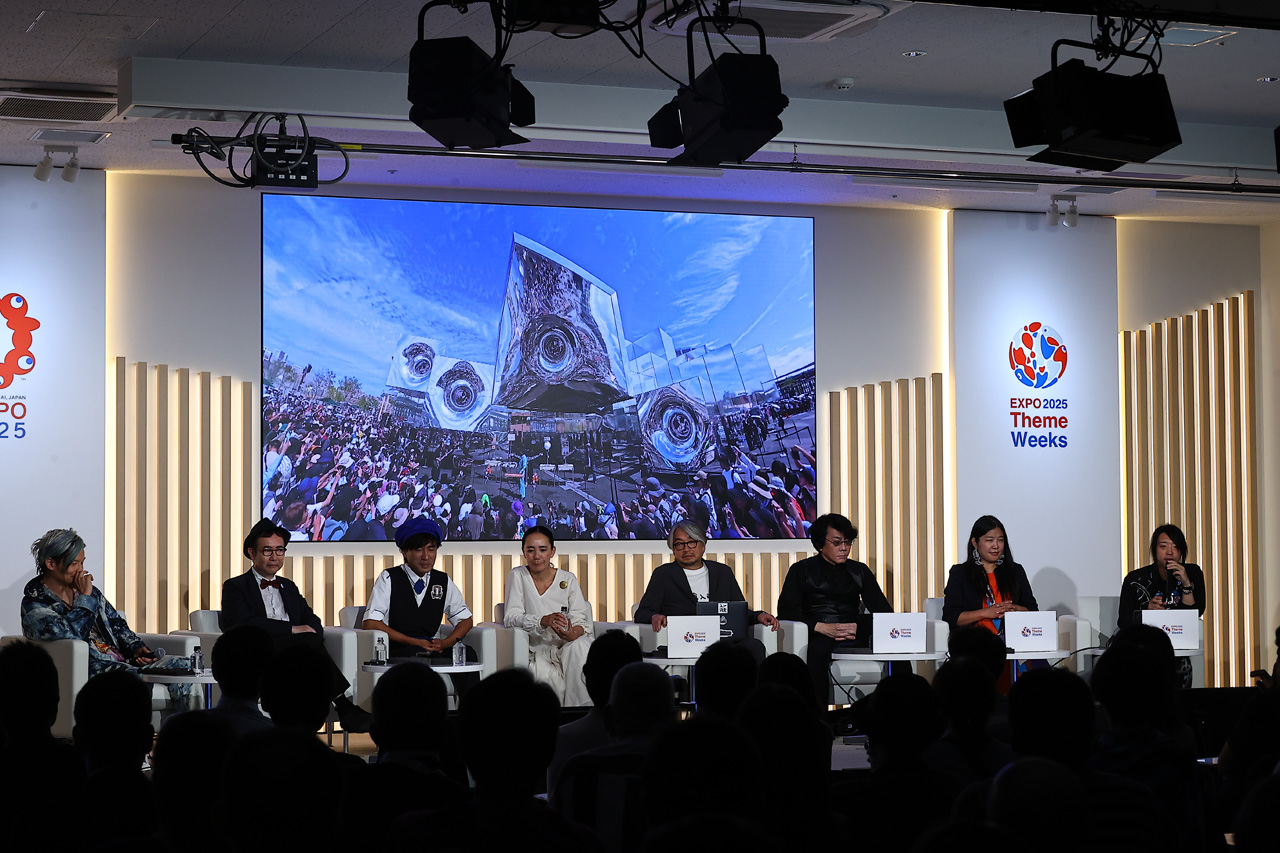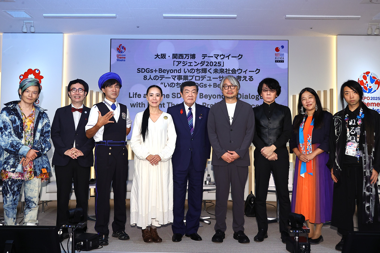 『8人のテーマ事業プロデューサーと考える“いのち”と SDGs+Beyond』と題して開催。登壇した8人は「いのち」に関する各シグニチャーパビリオンを担当し、その振り返りと、SDGs+Beyondへの展望とビジョンを披露することとなった。