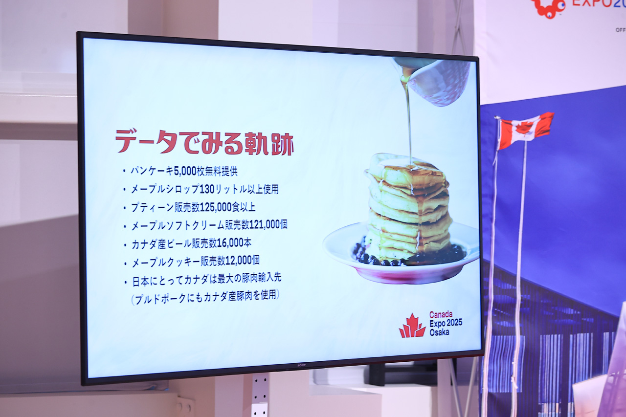 また、同館では期間中、パンケーキ5000枚無料提供、メープルシロップ130リットル以上使用、プティーン販売数12万5000食以上、メープルソフトクリーム販売数12万1000個、カナダ産ビール販売数1万6000本、メープルクッキー販売数1万2000個などを提供したとも話していた。