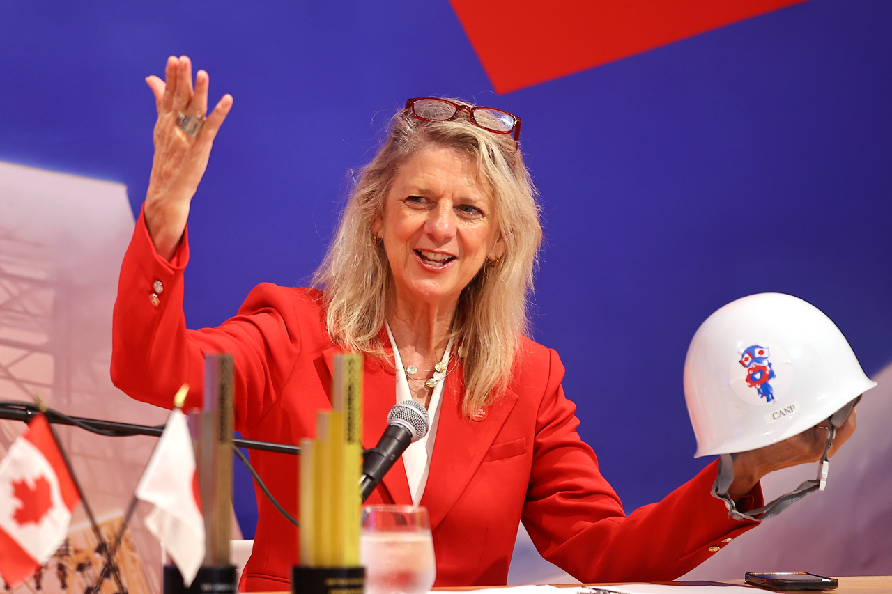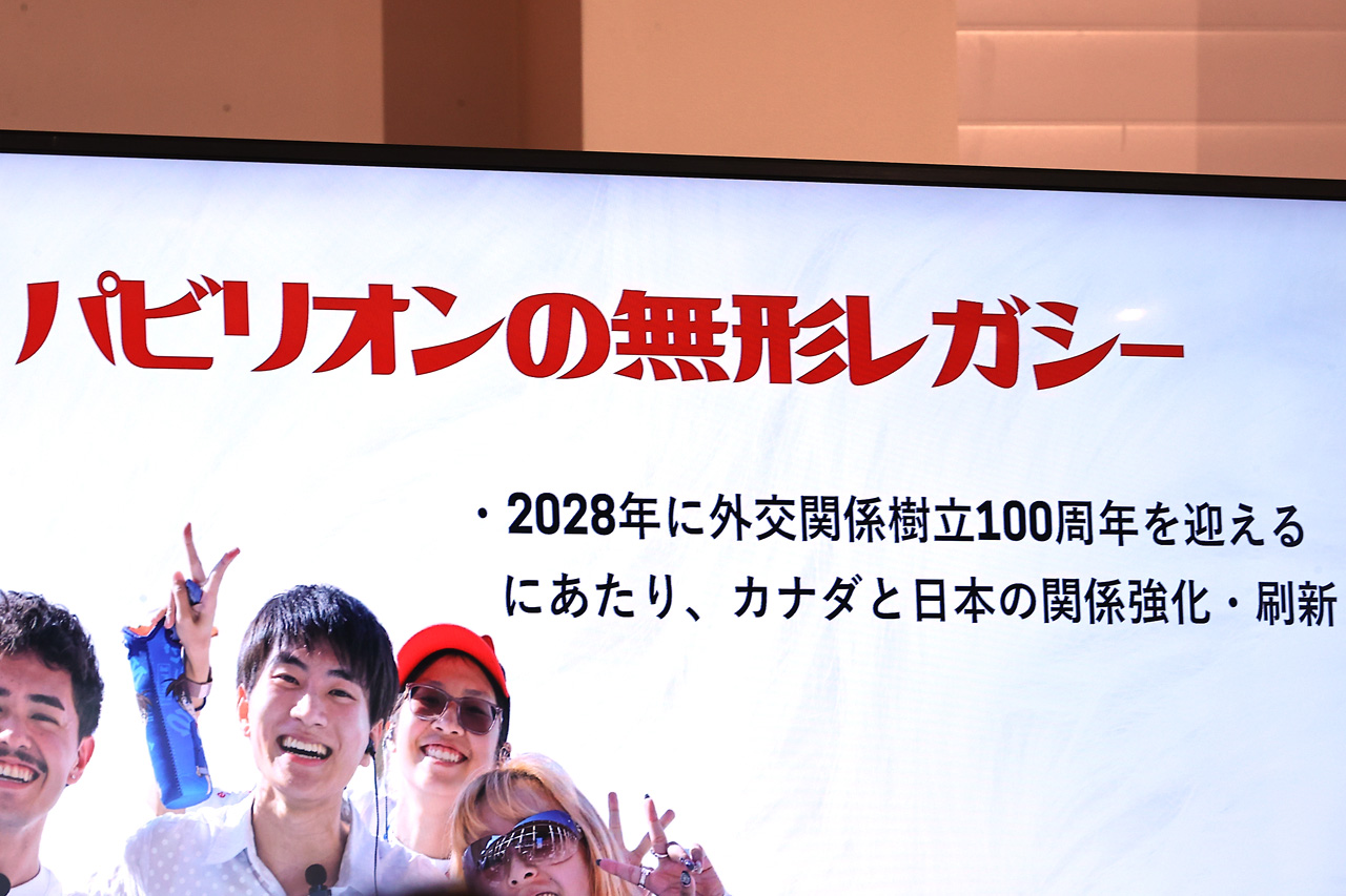プレゼンテーションには2025年大阪・関西万博 カナダパビリオン 政府代表のローリー・ピーターズ氏が登壇。「こんにちはー」「まいどー」など、日本語で気さくにあいさつし、会場の雰囲気を和ませつつ、「大阪万博の成功をともに祝いながら、この旅路に心から感謝しています」と英語で進めていく。
